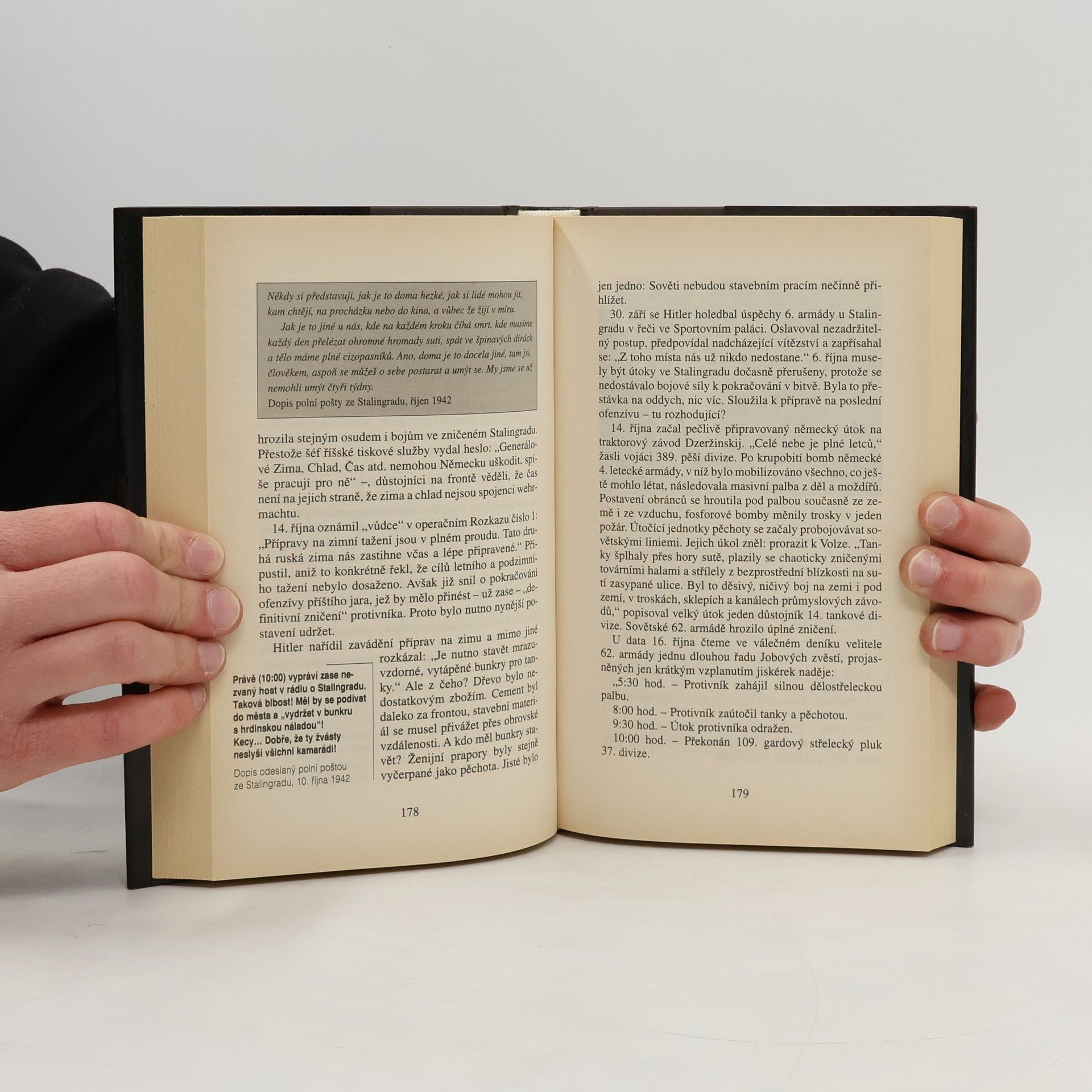 Peklo na Volze. Kruté boje Wehrmachtu s Rudou armádou u Stalingradu a zánik německé 6. armády na přelomu let 1942-1943 za 2. světové války. Operace "Fall Blau" měla dovést německou armádu v r. 1942 až na Kavkaz a k ropným polím u Kaspického moře. "Stratég stratégů" Adolf Hitler ale vyžadoval od svých již poněkud oslabených armád na východní frontě nesplnitelné. Úkolem byl pověřen nejbojeschopnější německý svazek, 6. armáda, v čele s nově jmenovaným velitelem Friedrichem Paulusem, který byl sice znamenitým stratégem, ale neměl mnoho praktických zkušeností. Stalingrad, který byl v původních plánech jen jedním z mnoha měst, se stal pro A. Hitlera posedlostí, pro statisíce německých a ruských vojáků i civilistů ledovým hrobem... Podrobný popis situace na východní frontě v r. 1942 a zběsilých bojů u Stalingradu i přímo ve městě je doplněn vzpomínkami a zajímavými úryvky z deníků a dopisů německých vojáků. Fotografie, seznam literatury, rejstřík. 1.vydání.... celý text