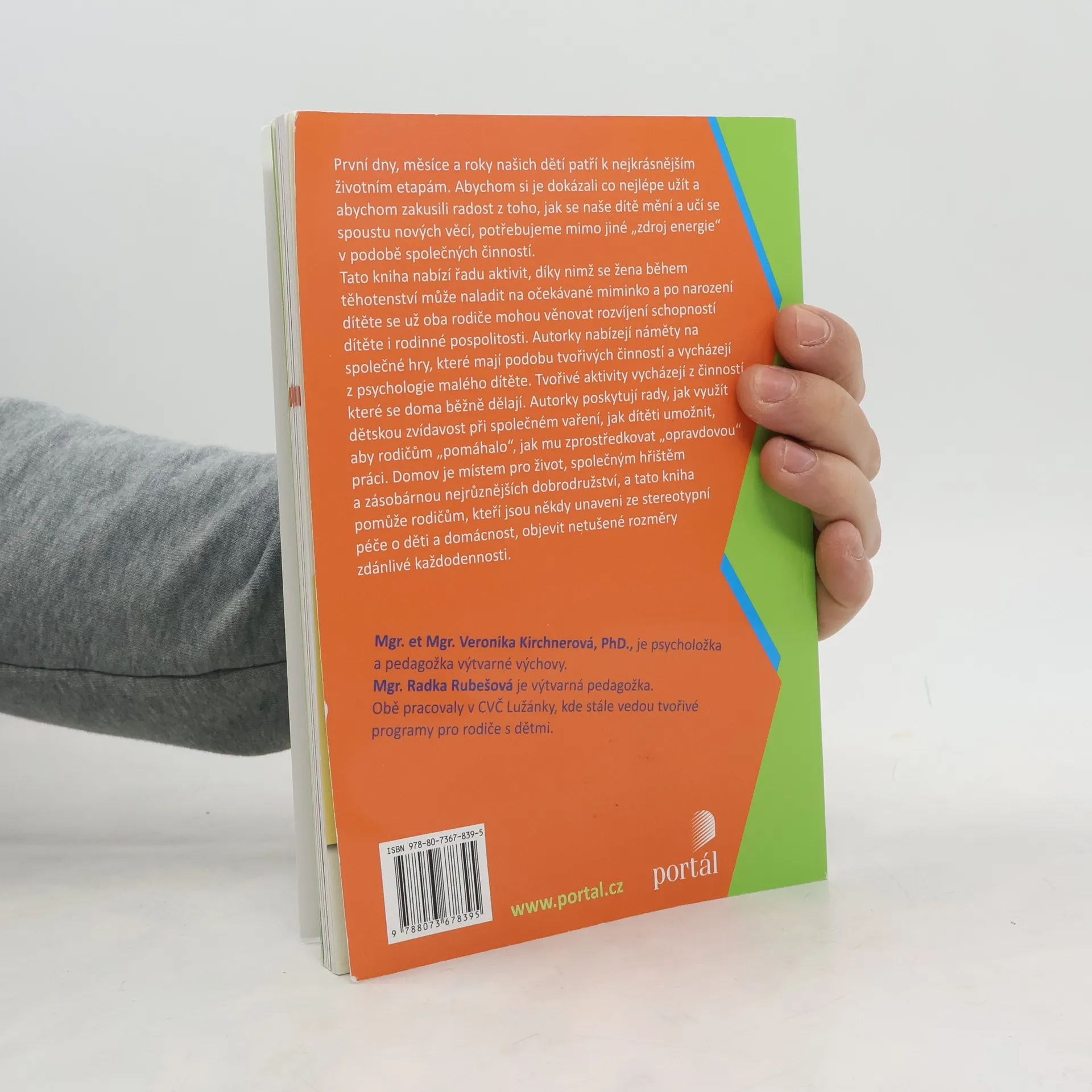 První dny, měsíce a roky našich dětí patří k nejkrásnějším životním etapám. Abychom si je dokázali co nejlépe užít a abychom zakusili radost z toho, jak se naše dítě mění a učí se spoustu nových věcí, potřebujeme mimo jiné „zdroj energie“ v podobě společných činností. Tato kniha nabízí řadu aktivit, díky kterým se žena může naladit na očekávané miminko a po narození dítěte se už oba rodiče mohou věnovat rozvíjení schopností dítěte i rodinné pospolitosti. Autorky nabízejí náměty na společné hry, které mají podobu tvořivých činností a vycházejí z psychologie malého dítěte. Tvořivé aktivity vycházejí z činností, které se doma dělají běžně. Autorky radí, jak využít dětskou zvídavost při společném vaření, jak dítěti umožnit, aby rodičům „pomáhalo“, jak mu zprostředkovat „opravdovou“ práci apod. Mgr. et Mgr. Veronika Kirchnerová, Ph.D., je psycholožka a pedagožka výtvarné výchovy. Mgr. Radka Rubešová je výtvarná pedagožka. Pracovaly v Centru volného času Lužánky, nyní jsou obě na mateřské dovolené.