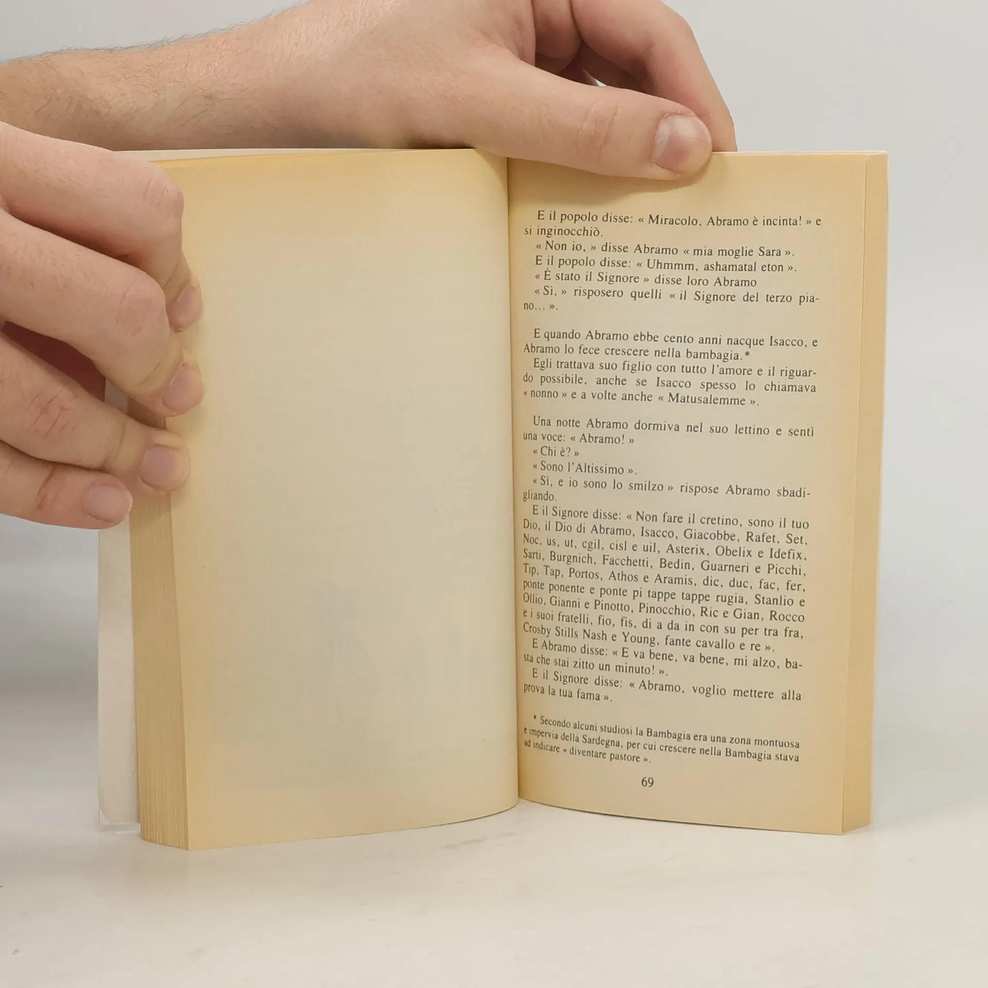 Traduzione dall'originale napoletano "Dicette Giobbe".Come hanno potuto Caino e Abele generare l'umanità? Quando è stato creato Andreotti? E i Puffi? E la forfora? Perché il Signore distrusse Gomorra? Che quote avevano i bookmakers per Golia contro Davide? Gesù era bravo a fare le moltiplicazioni, ma le somme? I Corinti hanno mai risposto alle lettere di San Paolo?A questi e a mille altri dubbi che ci hanno sempre assillati sin dalla più tenera infanzia, sin dalle prime lezioni di catechismo, Giobbe Covatta fornisce una risposta in un libro esilarante e travolgente, che si inserisce in una lunga tradizione italiana di parodie bibliche (basti pensare alla meravigliosa storia sacra sparsa tra i sonetti del Belli).Scopriremo, tra l'altro, che Noè non è stato l'unico a costruire un'arca, che Isacco aveva un fratello e l'arcangelo Gabriele un meno noto collega, che essere il prediletto del Signore non è sempre una bella cosa e da dove viene il detto "prendere due piccioni con una fava".Se poi qualche punto dovesse rimanere ancora oscuro, ci penseranno le fulminanti illustrazioni di Stefano Disegni a chiarirlo.