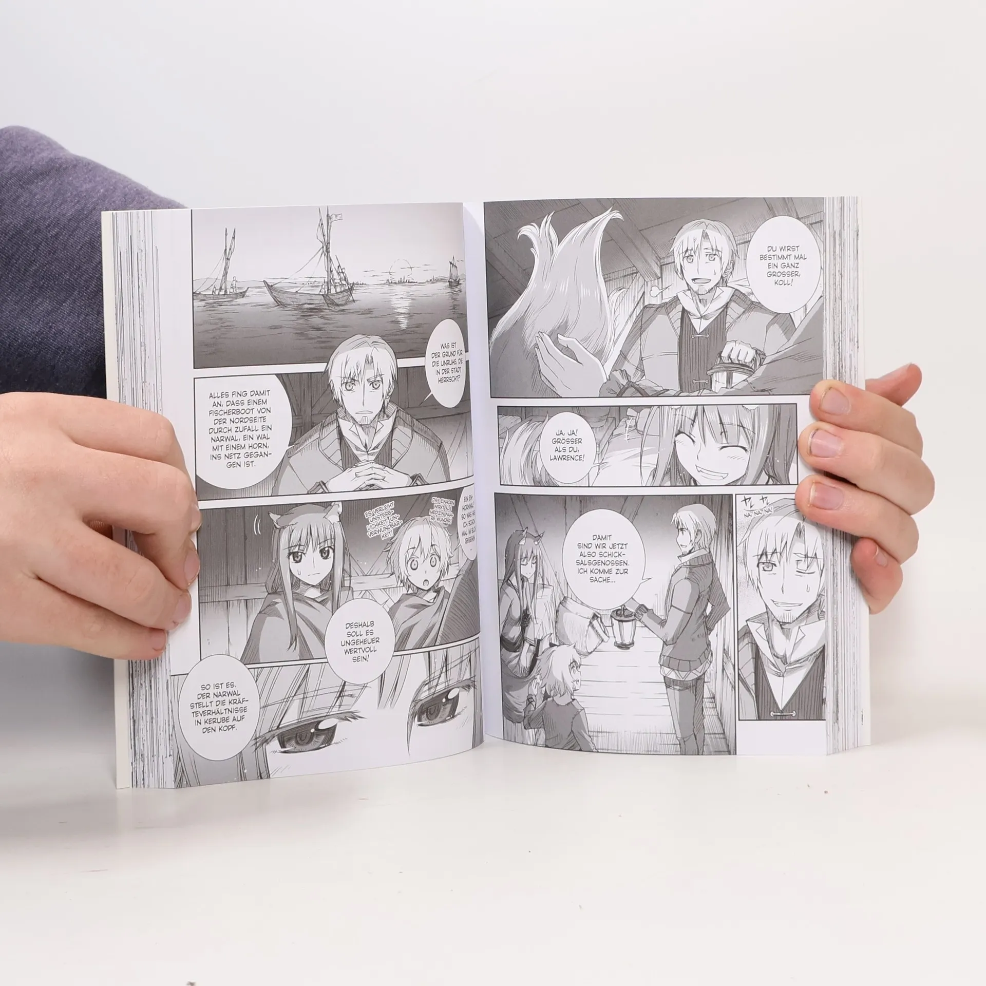 DER MANGA ZUR ANIME-SERIE AUF CRUNCHYROLL! Jetzt als hübsche 2-in-1-Edition in größerem Format. SPICE & WOLF entführt dich in die faszinierende Welt des reisenden Händlers Kraft Lawrence und der weisen Wolfsgöttin Holo. Begleite sie auf ihrer Reise durch mittelalterliche Landschaften, während sie Handel treiben, Rätsel lösen und eine tiefe Bindung zueinander aufbauen. Das erwartet dich in Band 5: Auf der Suche nach Informationen über das sagenumwobene Yoitsu gelangen Lawrence und seine Gefährtin Holo in die Hafenstadt Gerube. Dort geraten sie in ein kompliziertes Ränkespiel konkurrierender Gruppen, die um Profite und die Vorherrschaft in der Stadt wetteifern. Der Schlüssel zu diesem Konflikt scheint in einem geheimnisvollen, verbotenen Buch über die Kunst des Erzbergbaus zu liegen. Aber da ist auch noch ein seltsamer Unbekannter, der auffällig den Kontakt zu Lawrence sucht … Perfekt für Fans von Fantasy, Romantik und Wirtschaftsgeschichten!