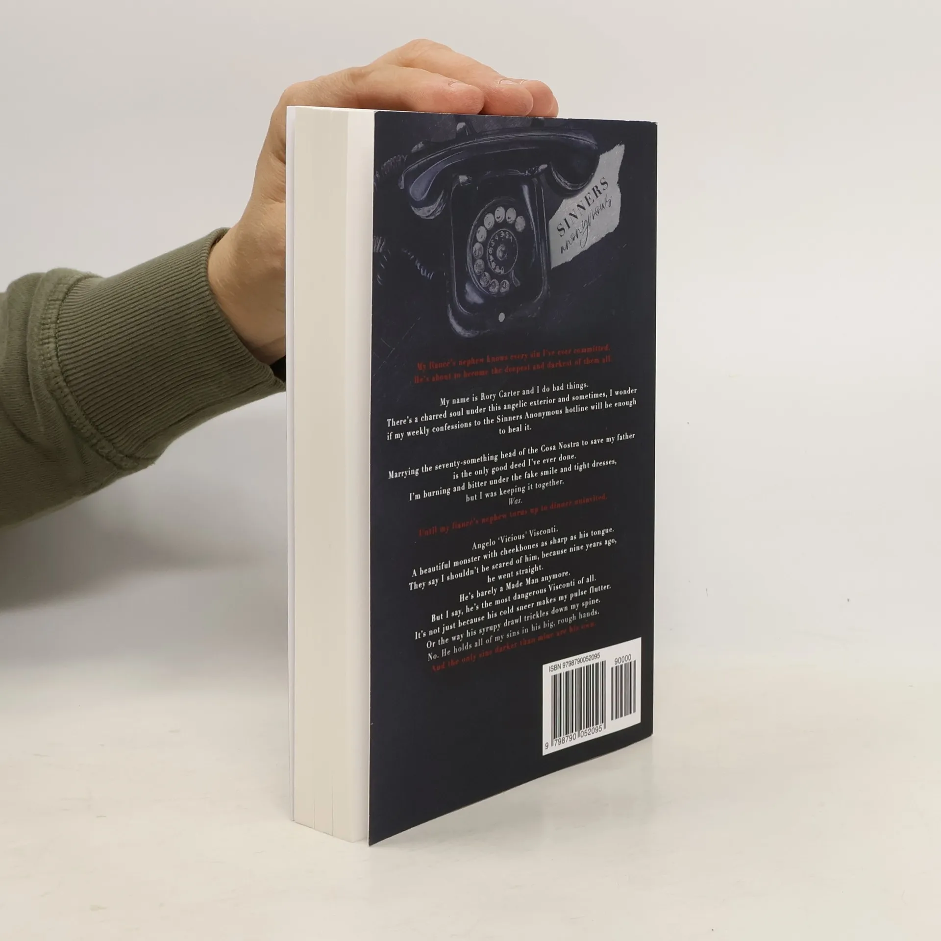 My fiancé's nephew knows every sin I've ever committed. He's about to become the deepest and darkest of them all. My name is Rory Carter and I do bad things. There's a charred soul under this angelic exterior and sometimes, I wonder if my weekly confessions to the Sinners Anonymous hotline will be enough to heal it. Marrying the seventy-something head of the Cosa Nostra to save my father is the only good deed I've ever done. I'm burning and bitter under the fake smile and tight dresses, but I was keeping it together. Was. Until my fiancé's nephew turns up to dinner uninvited. Angelo "Vicious" Visconti. A beautiful monster with cheekbones as sharp as his tongue. They say I shouldn't be scared of him, because nine years ago, he went straight. He's barely a Made Man anymore. But I say, he's the most dangerous Visconti of all. It's not just because his cold sneer makes my pulse flutter. Or the way his syrupy drawl trickles down my spine. No. He holds all of my sins in his big, rough hands. And the only sins darker than mine are his own.
