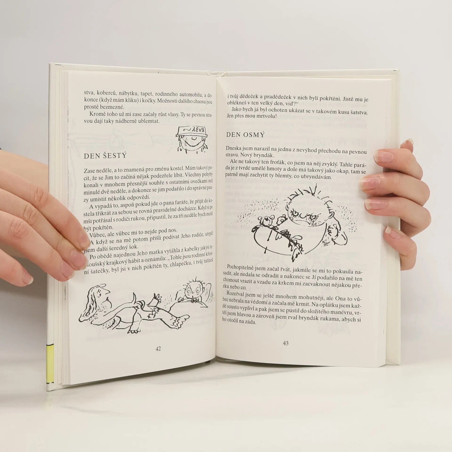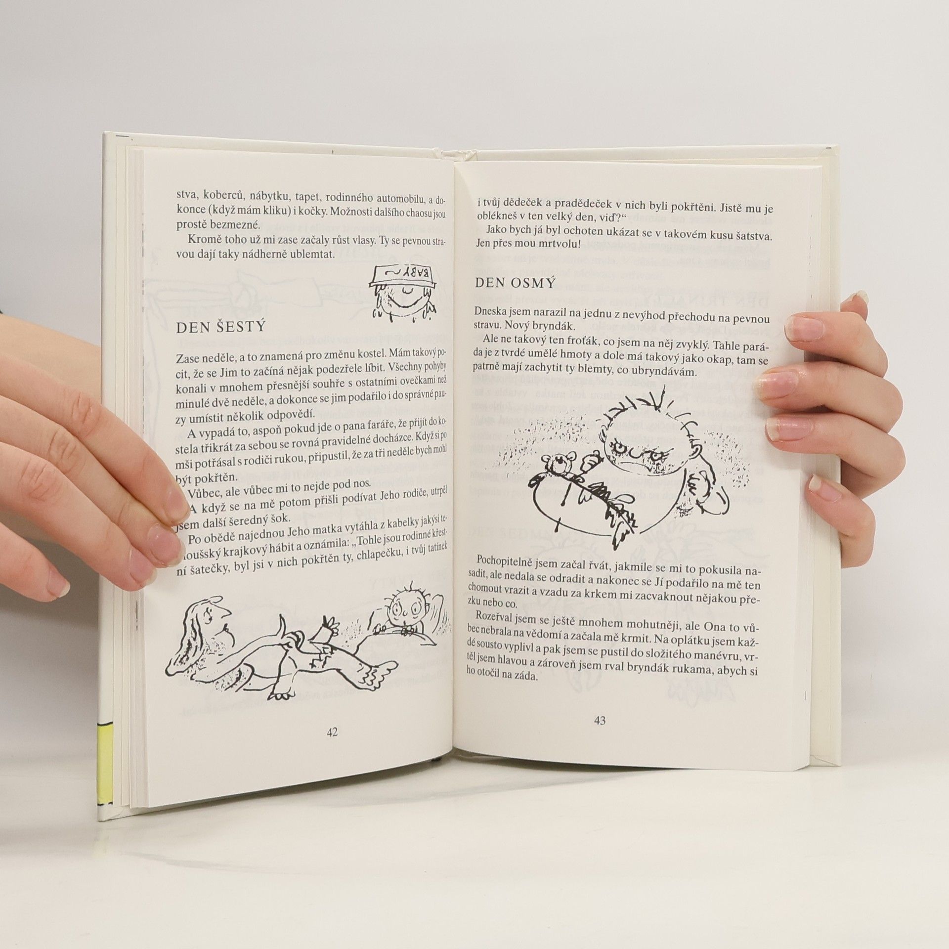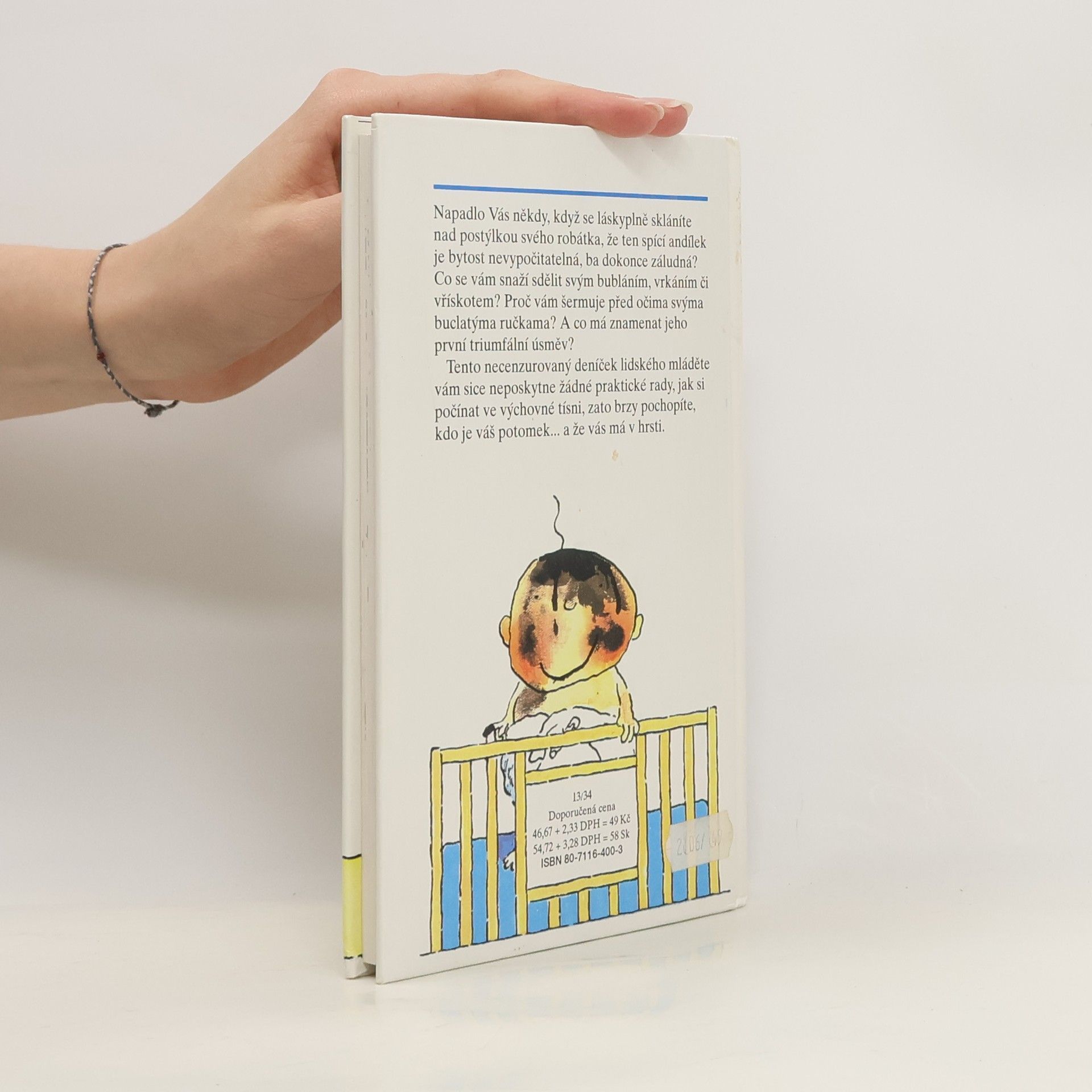 Napadlo Vás někdy, když se láskyplně skláníte nad postýlkou svého robátka, že ten spící andílek je bytost nevypočitatelná, ba dokonce záludná? Co se vám snaží sdělit svým bubláním, vrkáním či vřískotem? Proč vám šermuje před očima svýma buclatýma ručkama? A co má znamenat jeho první triumfální úsměv? Tento necenzurovaný deníček lidského mláděte vám sice neposkytne žádné praktické rady, jak si počínat ve výchovné tísni, zato brzy pochopíte, kdo je váš potomek... a že vás má v hrsti.