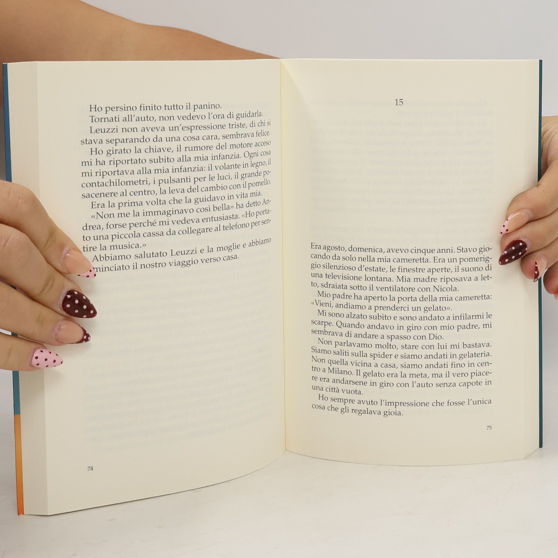"Due amici su un'auto rossa attraversano l'Italia: musica da cantare, il vento tra i capelli, la mano fuori dal finestrino a giocare con l'aria. Hanno una quarantina d'anni e una vita incagliata. Andrea aspetta un verdetto da cui dipende la sua vita sentimentale. Paolo è in crisi: di coppia, di identità, di mezza età. O forse è solamente bisogno di leggerezza. L'auto su cui viaggiano è una vecchia Fiat 850 spider. Il padre di Paolo l'aveva dovuta vendere per far spazio alla famiglia, e ancora la rimpiange. Così Paolo ha deciso di recuperarla e fargli una sorpresa. Mentre risalgono dalla Puglia a Milano, Paolo e Andrea parlano tra loro con la spietatezza che ci si può concedere solo fra amici: l'amore, il lavoro, i genitori... E quelli che sembravano problemi insolubili si sgonfiano alla luce di una leggera ironia. Sarà un viaggio pieno di divertentissimi imprevisti e di scoperte, delle bellezze che a volte non si vedono mentre siamo concentrati a fare quello che gli altri si aspettano da noi. Un viaggio che condurrà Paolo dal dovere al volere, dal pensare al sentire, dal pudore alla tenerezza." --libreriauniversitaria.it