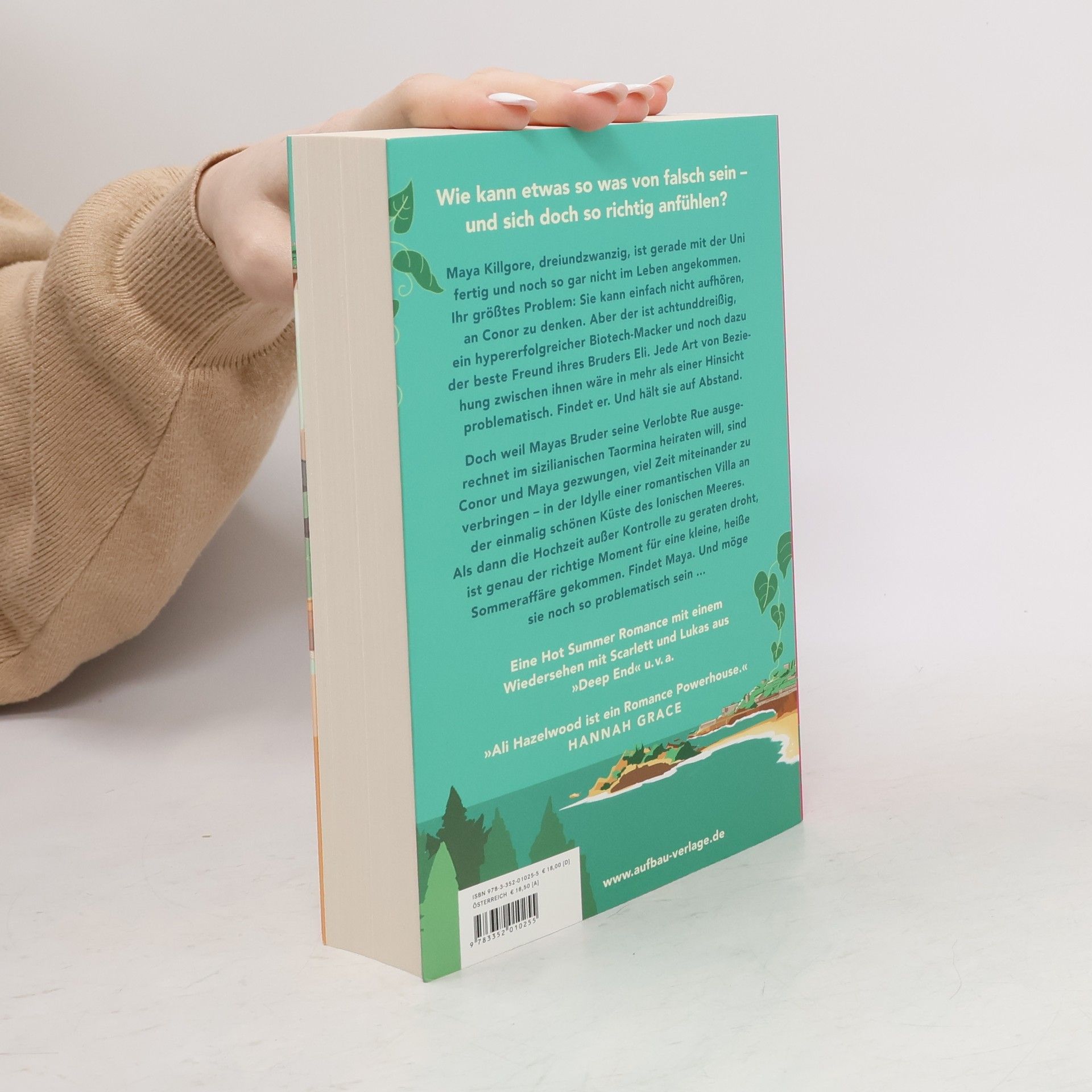 Was falsch ist, trifft auf das, was sich richtig anfühlt, in dieser Romanze, die in Italien spielt. Maya Killgore ist dreiundzwanzig und versucht noch, ihr Leben zu ordnen. Conor Harkness ist achtunddreißig, und Maya kann nicht aufhören, an ihn zu denken. Es ist ein Klischee, das fast ihr Herz zum Bersten bringt: älterer Mann und jüngere Frau; erfolgreicher Biotech-Typ und kämpfende Doktorandin; bester Freund des Bruders und das Mädchen, von dem er nicht einmal wusste, dass es existiert. Conor erinnert sie oft daran, dass das Machtverhältnis zu unausgewogen ist. Jede Beziehung zwischen ihnen wäre aus zu vielen Gründen problematisch, und Maya sollte einfach über ihn hinwegkommen. Doch nicht alles ist, wie es scheint – und Klischees werden manchmal zu Wendepunkten. Als Mayas Bruder beschließt, in Taormina zu heiraten, sind sie und Conor mehr als eine Woche lang in einer romantischen sizilianischen Villa gefangen. Dort, an der schönen ionischen Küste, zwischen antiken Ruinen, köstlichem Essen und natürlichen Höhlen, erkennt Maya, dass Conor ihr etwas verheimlichen könnte. Und als die Hochzeitsfeier außer Kontrolle gerät, beschließt sie, dass eine Sommeraffäre genau das sein könnte, was sie braucht – auch wenn sie problematisch ist.
