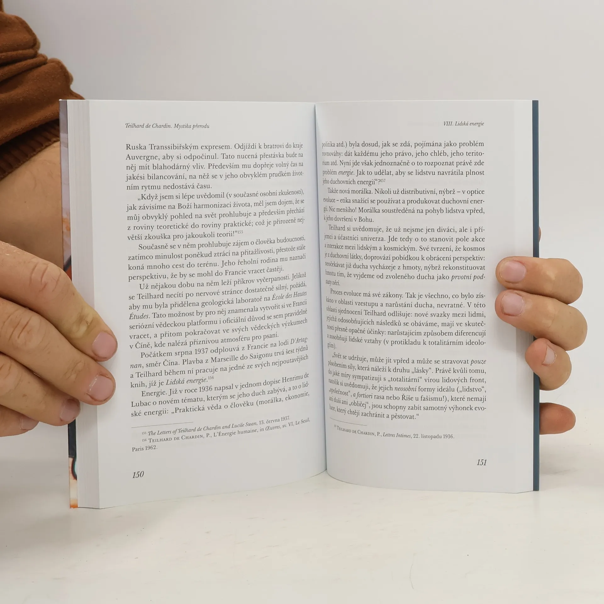 Autorka představuje Teilharda vyváženě. Pro českého čtenáře budou obzvláště cenné dosud nepublikované pasáže o jeho čínském (resp. asijském) období, stejně jako sdělení o jeho prožívaní „temné noci“. Autorka nabízí vhled do ranější a méně známé korespondence (například s Mademoiselle Zanta), a dostáváme se také k nepublikovaným Teilhardovým deníkům.