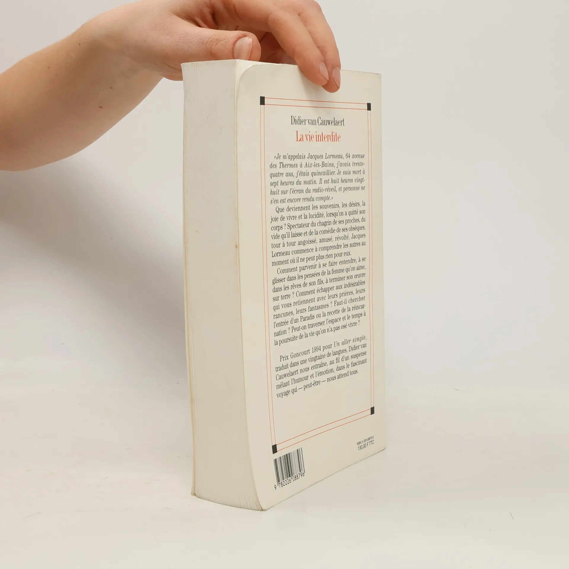 « Je m'appelais Jacques Lormeau, 64, avenue des Thermes à Aix-les-Bains, j'avais trente-quatre ans, j'étais quincaillier. Je suis mort à sept heures du matin. Il est huit heures vingt-huit sur l'écran du radio-réveil, et personne ne s'en est encore rendu compte. »Que deviennent les souvenirs, les désirs, la joie de vivre et la lucidité, lorsqu'on a quitté son corps ? Spectateur du chagrin de ses proches, du vide qu'il laisse et de la comédie de ses obsèques, tour à tour angoissé, amusé, révolté, Jacques Lormeau commence à comprendre les autres au moment où il ne peut plus rien pour eux.Comment parvenir à se faire entendre, à se glisser dans les pensées de la femme qu'on aime, dans les rêves de son fils, à terminer son œuvre sur terre ? Comment échapper aux indésirables qui vous retiennent avec leurs prières, leurs rancunes, leurs fantasmes ? Faut-il chercher l'entrée d'un Paradis ou la recette de la réincarnation ? Peut-on traverser l'espace et le temps à la poursuite de la vie qu'on n'a pas osé vivre ?