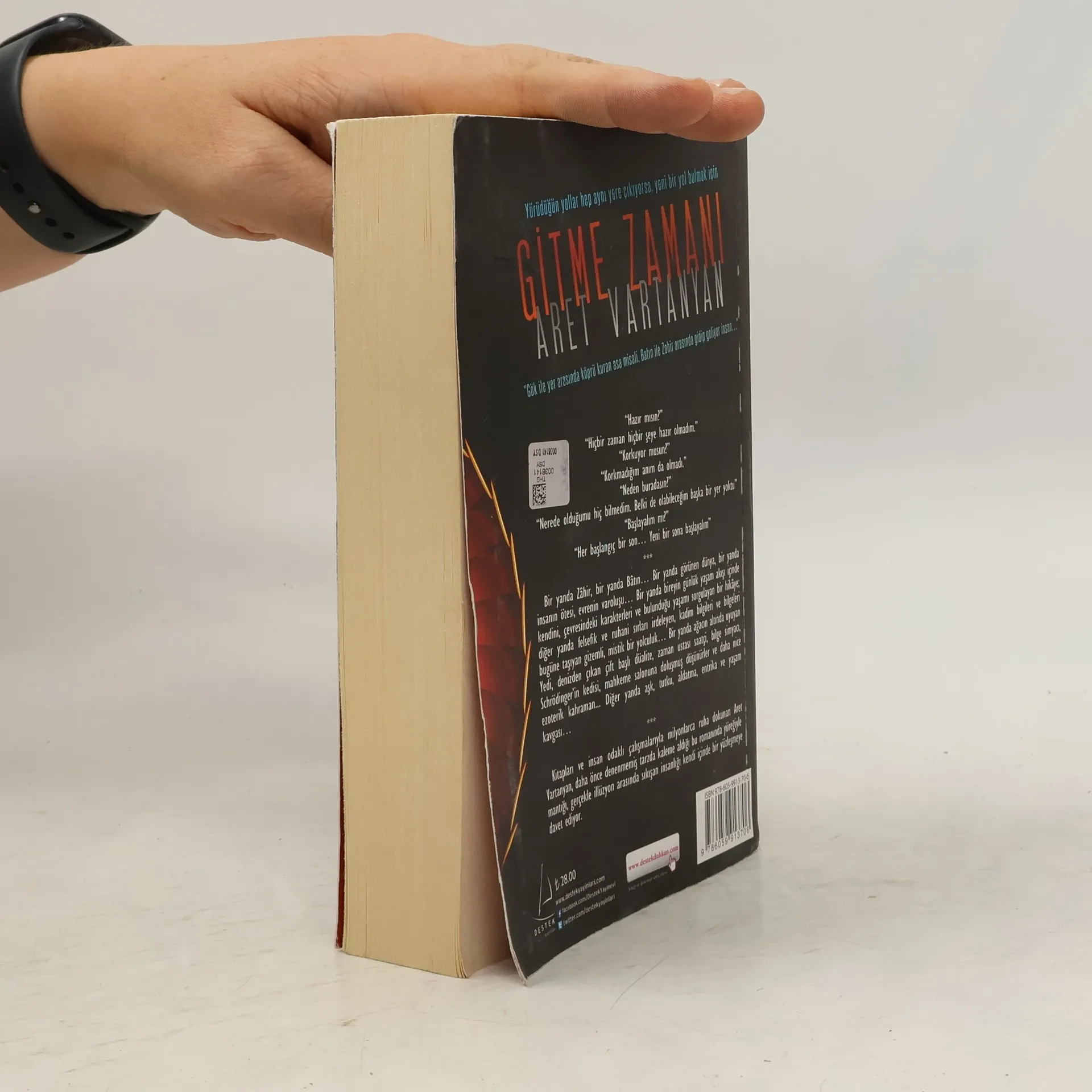 "Gök ile yer arasında köprü kuran asa misali, Bâtın ile Zâhir arasında gidip geliyor insan…""Hazır mısın?""Hiçbir zaman hiçbir şeye hazır olmadım.""Korkuyor musun?""Korkmadığım anım da olmadı.""Neden buradasın?""Nerede olduğumu hiç bilmedim. Belki de olabileceğim başka bir yer yoktu." "Başlayalım mı?""Her başlangıç bir son… Yeni bir sona başlayalım."Bir yanda Zâhir, bir yanda Bâtın… Bir yanda görünen dünya, bir yanda insanın ötesi, evrenin varoluşu… Bir yanda bireyin günlük yaşam akışı içinde kendini, çevresindeki karakterleri ve bulunduğu yaşamı sorgulayan bir hikâye; diğer yanda felsefik ve ruhani sırları irdeleyen, kadim bilgileri ve bilgeleri bugüne taşıyan gizemli, mistik bir yolculuk… Bir yanda ağacın altında uyuyan Yedi, denizden çıkan çift başlı düalite, zaman ustası saatçi, bilge simyacı, Schrödinger'in kedisi, mahkeme salonuna doluşmuş düşünürler ve daha nice ezoterik kahraman... Diğer yanda aşk, tutku, aldatma, entrika ve yaşam kavgası…Kitapları ve insan odaklı çalışmalarıyla milyonlarca ruha dokunan Aret Vartanyan, daha önce denenmemiş tarzda kaleme aldığı bu romanında yüreğiyle mantığı, gerçekle illüzyon arasında sıkışan insanlığı kendi içinde bir yüzleşmeye davet ediyor.(Tanıtım Bülteninden)