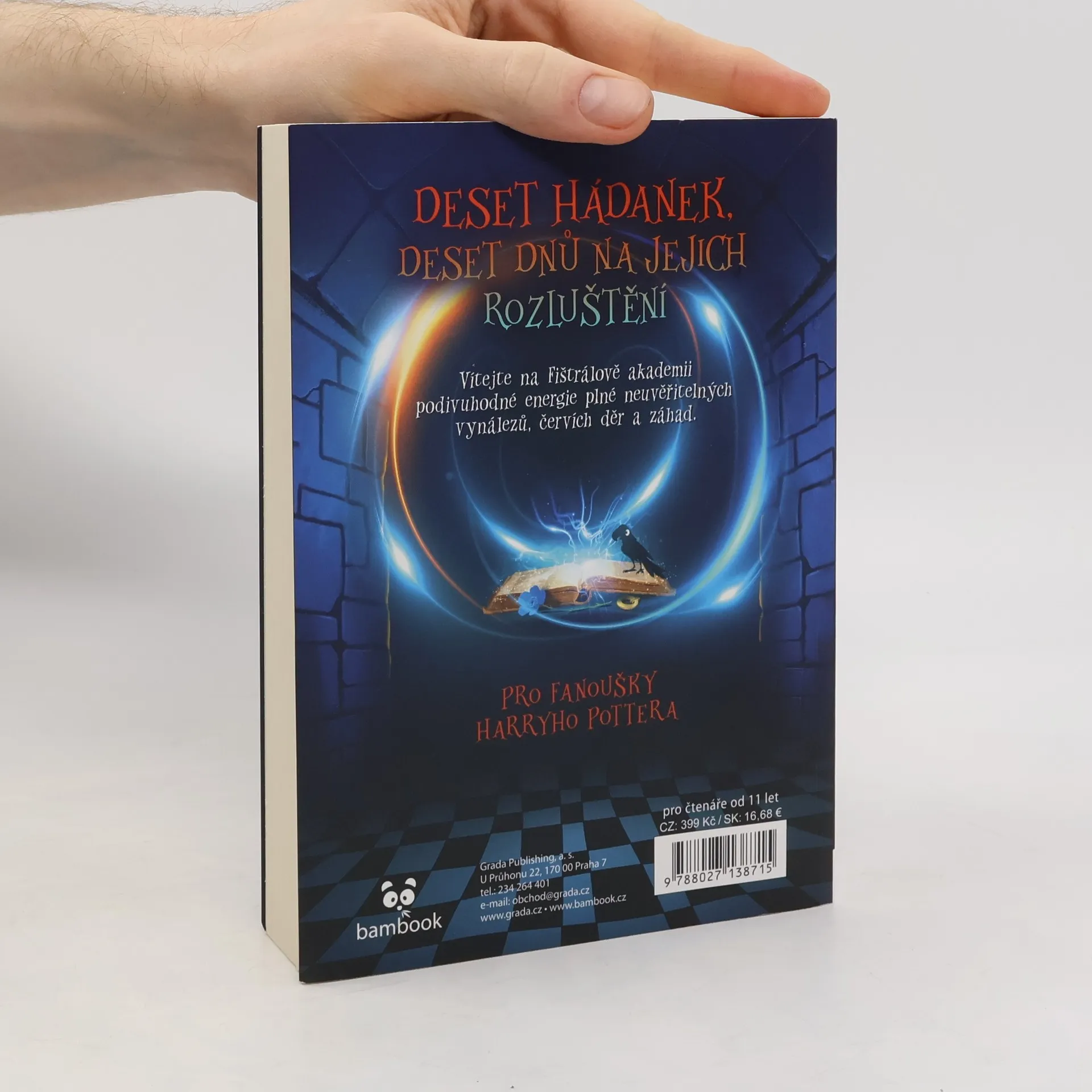 Deset hádanek, deset dnů na jejich rozluštění… Vítejte na Fištrálově akademii podivuhodné energie plné neuvěřitelných vynálezů, červích děr a záhad. Kip Bramley miluje hádanky - a tahle je životní. Když mu jednou dron ve tvaru brouka doručí záhadnou pozvánku, Kip netuší, že právě otevřel dveře do světa plného dobrodružství i nebezpečí. Brzy se ocitá na Fištrálově akademii podivuhodné energie, kde geniální absolventka před čtyřmi sty lety ukryla klíč k nesmírně cennému tajemství.Čas běží, hrozba sílí - a Kip bude potřebovat nejen svou bystrou mysl, ale i pomoc přátel a věrné létavé veverky Pinky. Protože v sázce je kromě jeho budoucnosti také osud celé jeho rodiny…