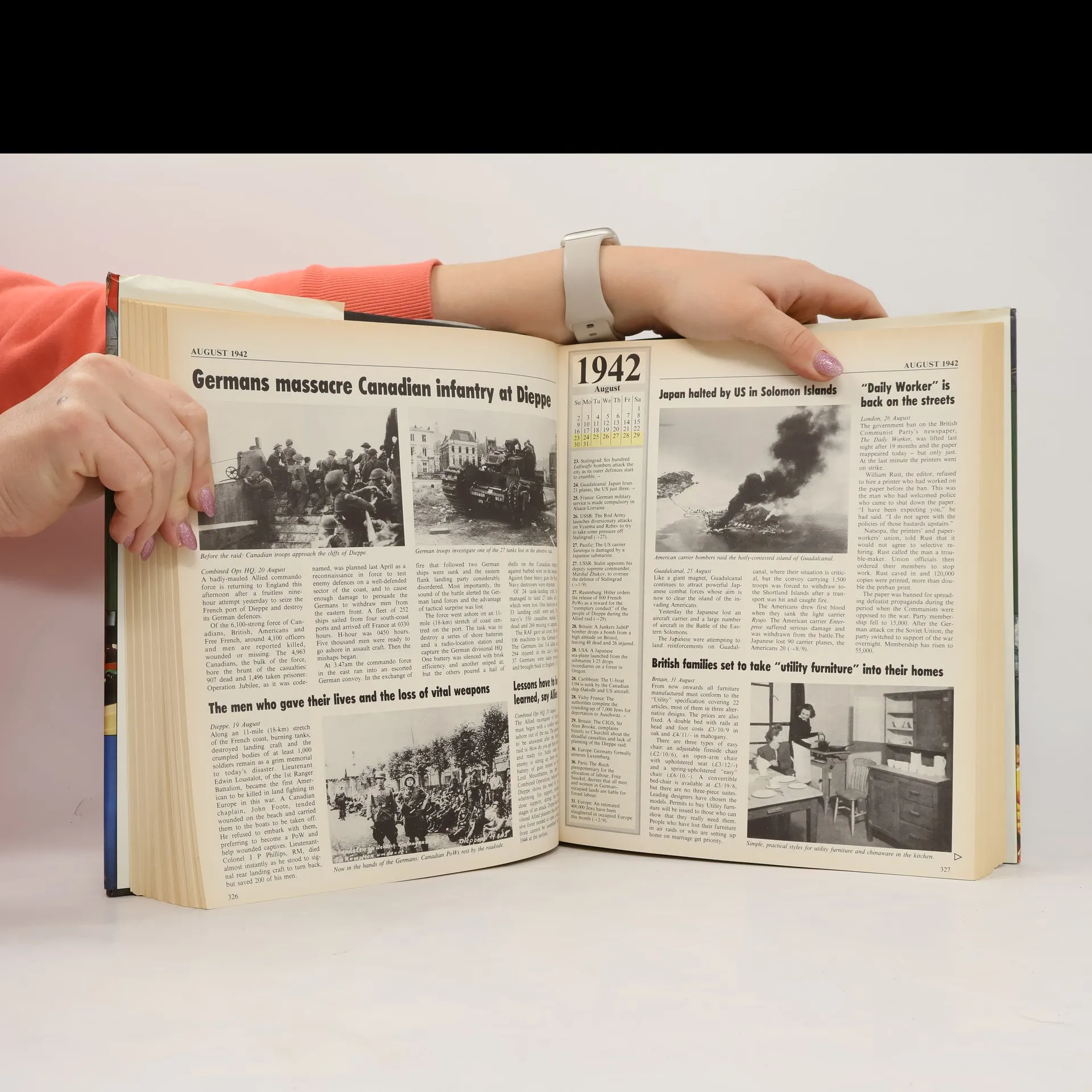 Offers a week-by-week chronology of World War II, includes information that was classified during the war, and shows examples of propaganda posters.