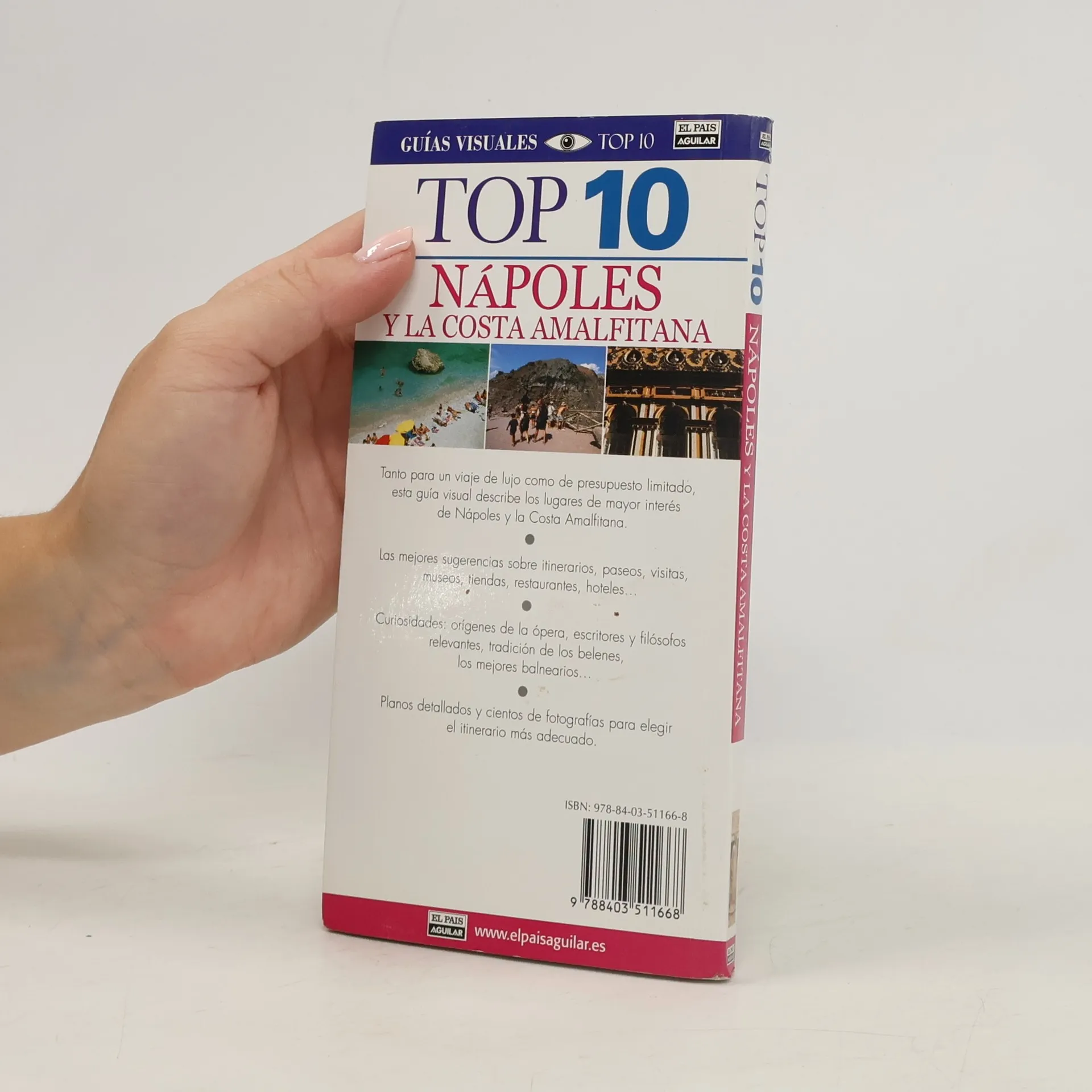 La guía que te descubre lo mejor de Nápoles La Guía Visual Top 10: Nápoles te descubrirá lo mejor de esta ciudad. Tanto si buscas los monumentos o recorridos que no debes perderte como si quieres encontrar los mejores locales de ocio nocturno, esta guía será tu mejor compañera de viaje (¡y cabe en un bolsillo!) * Organizada en listados Top 10 -desde el Top 10 de los museos hasta el de los eventos y festivales- cuenta incluso con un Top 10 de cosas a evitar. * La guía está organizada por barrios y en cada uno de ellos se incluyen recomendaciones de restaurantes, hoteles, cafés y tiendas. * En sus páginas encontrarás la información privilegiada que todo visitante necesita y podrás descubrir sin esfuerzo cada rincón de esta ciudad con la Guía Visual Top 10: Nápoles . La guía que te enseña lo que otras sólo cuentan.