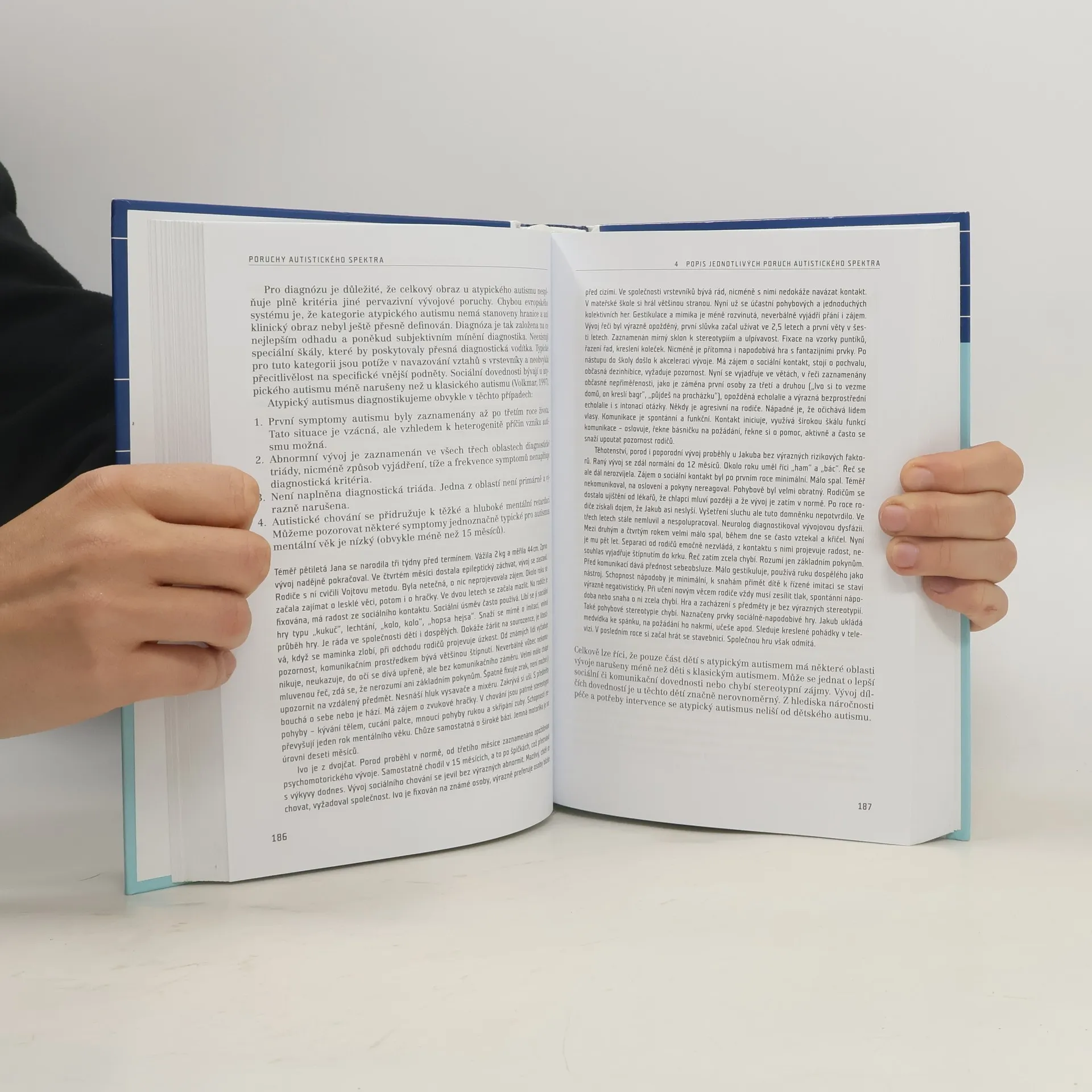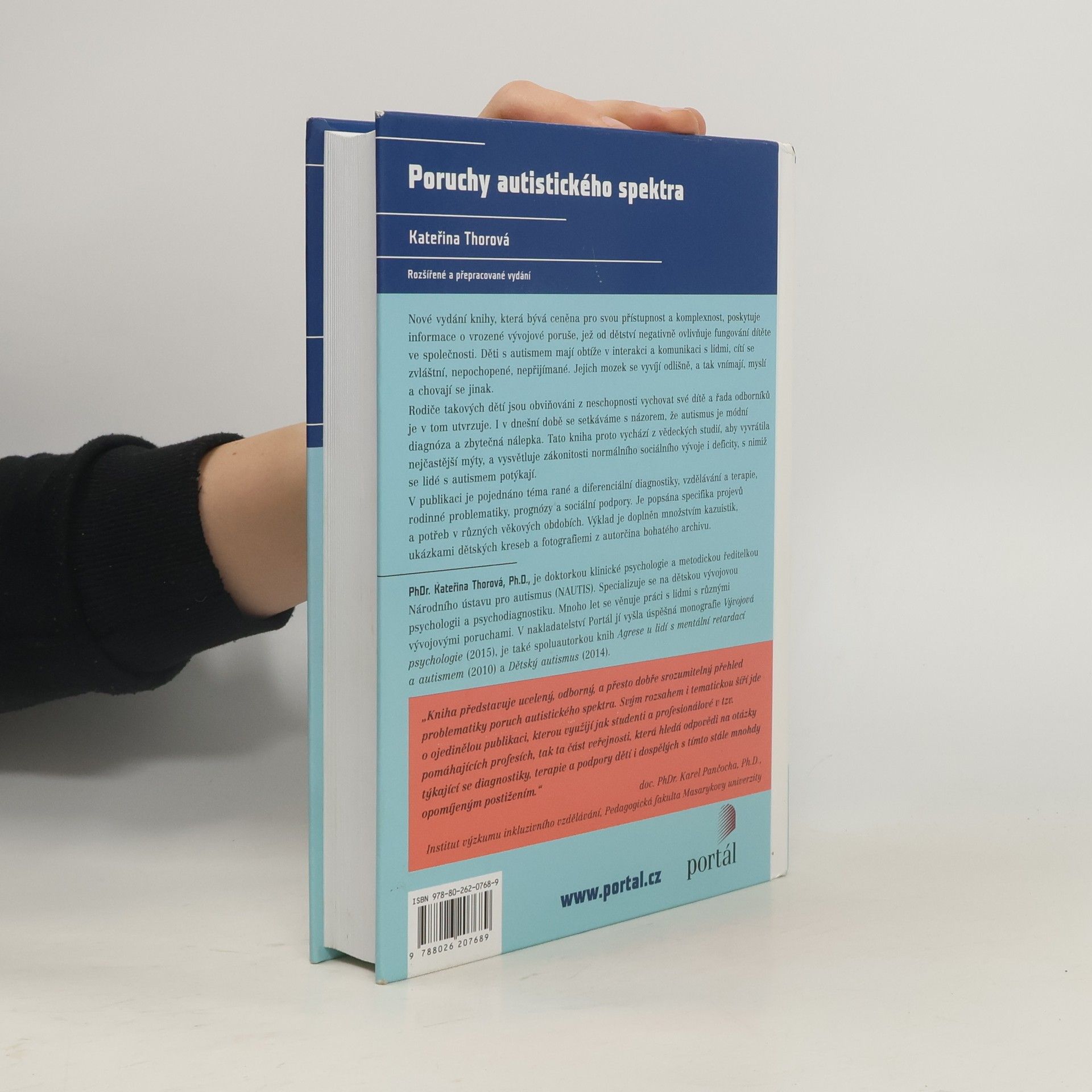 Publikace zkušené psycholožky přináší komplexní pohled na jednu ze závažných dětských vývojových poruch, jejíž dopad se promítá zejména do oblasti sociálních interakcí, vztahů a komunikace. K popisovaným poruchám autistického spektra řadíme především dětský autismus, atypický autismus a Aspergerův syndrom. Mezi pojednávaná témata patří například raná diagnostika v praxi, diferenciální diagnostika z pohledu psychologa, vzdělávání a terapie, rodinná problematika, prognóza, specifika vývojové trajektorie poruchy, školní a sociální problematika. Výklad je doplněn množstvím kazuistik, ukázkami dětských kreseb a fotografiemi z autorčina bohatého archivu.