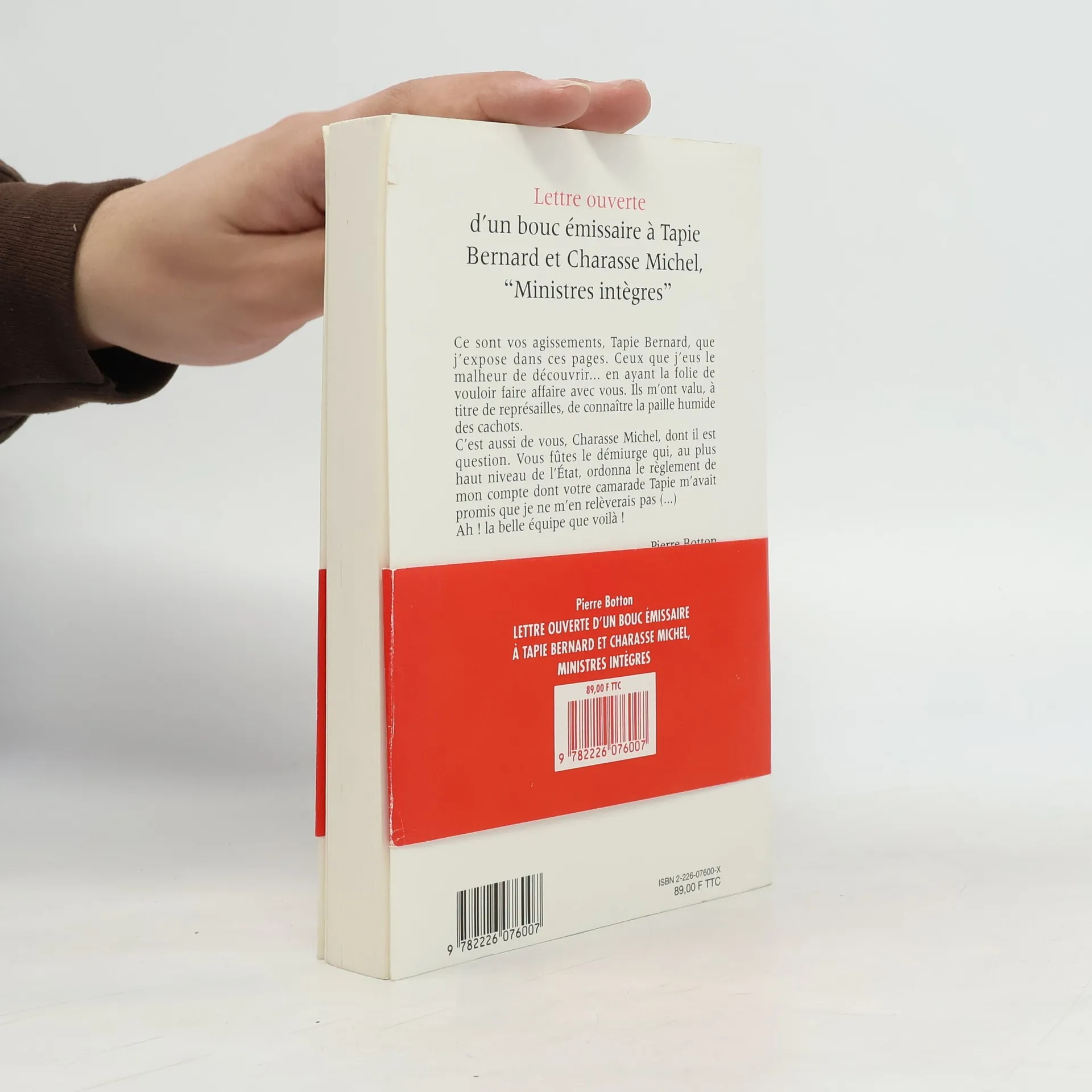 Lettre ouverte d'un bouc émissaire à Tapie Bernard et Charasse Michel, "Ministres intègres", Pierre Botton