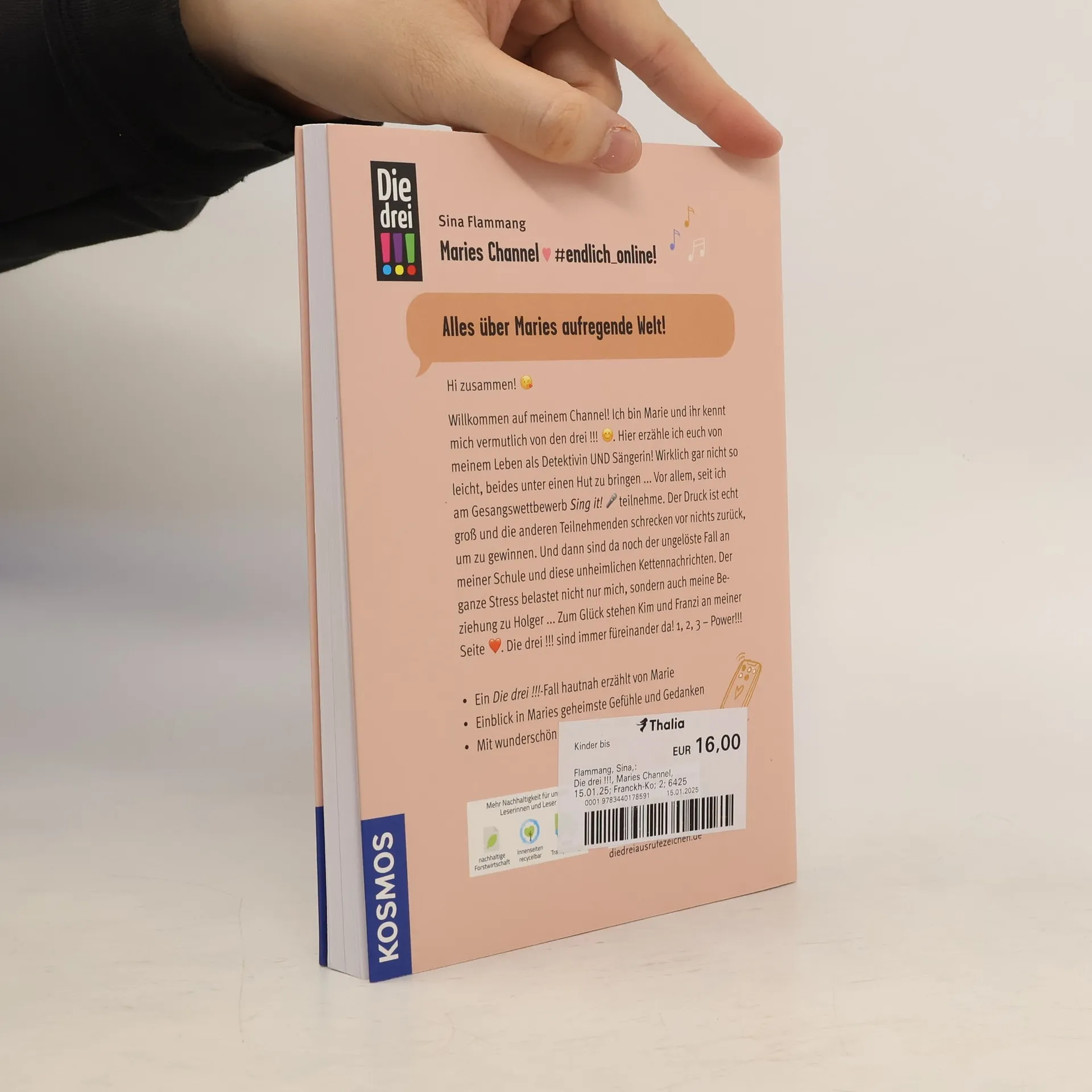 Endlich berühmt! Marie Grevenbroich von den drei !!! geht online: Als Singer-Songwriterin und Schauspielerin startet sie ihren eigenen Channel. Er läuft schnell richtig gut und immer mehr Fans folgen ihr. Der Karriere steht nichts mehr im Weg. Oder? Doch der Erfolg hat auch seine Schattenseiten. Wie geht Marie mit seltsamen Werbeanfragen, Eifersucht und Cyber-Mobbing um? Ein actionreicher und witziger Krimi-Roman im Post-Stil rund um Social Media, Freundschaft, Liebe und Lifestyle. Mit coolen Extras: wunderschön illustrierte Channel-Post, lustige Chats und Tipps zum richtigen Umgang mit Social Media..