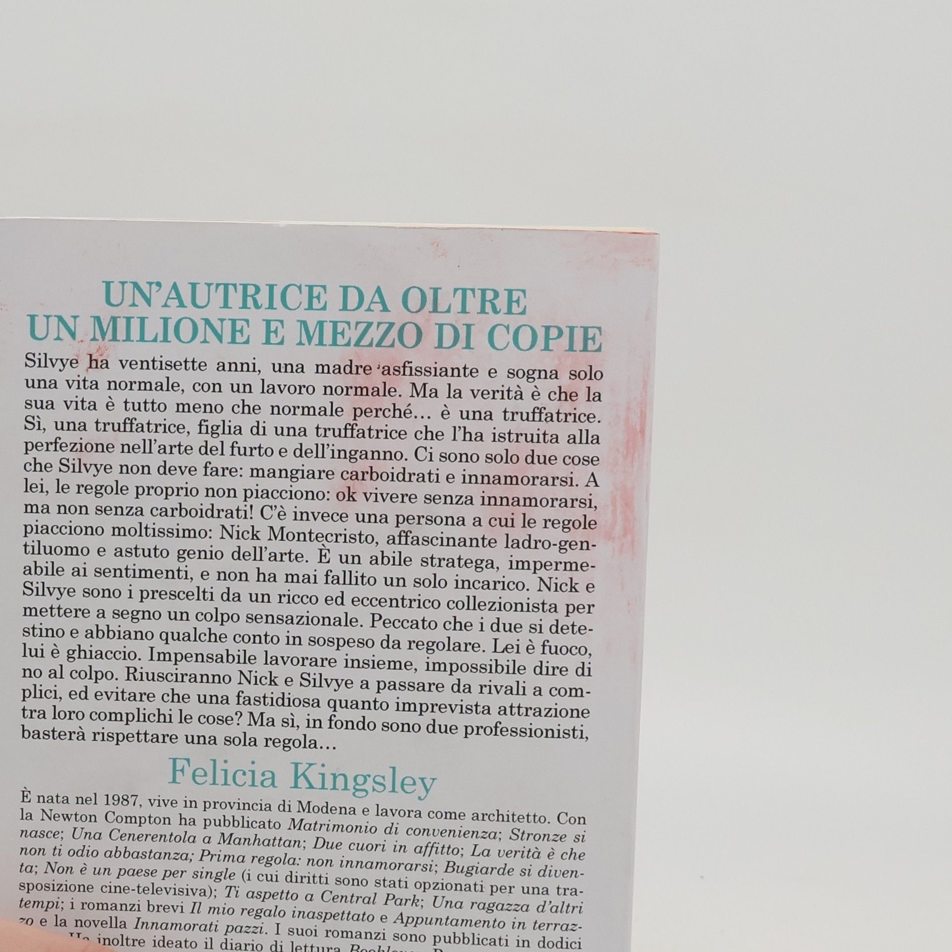 Silvye ha ventisette anni, una madre asfissiante e sogna solo una vita normale, con un lavoro normale. Ma la verità è che la sua vita è tutto meno che normale perché… è una truffatrice. Sì, una truffatrice, figlia di una truffatrice che l’ha istruita alla perfezione nell’arte del furto e dell’inganno. Ci sono solo due cose che Silvye non deve fare: mangiare carboidrati e innamorarsi. A lei, le regole proprio non piacciono: ok vivere senza innamorarsi, ma non senza carboidrati!C’è invece una persona a cui le regole piacciono moltissimo: Nick Montecristo, affascinante ladro-gentiluomo e astuto genio dell’arte. È un abile stratega, impermeabile ai sentimenti, e non ha mai fallito un solo incarico.Nick e Silvye sono i prescelti da un ricco ed eccentrico collezionista, per mettere a segno un colpo sensazionale. Peccato che i due si detestino e abbiano qualche conto in sospeso da regolare. Lei è fuoco, lui è ghiaccio. Impensabile lavorare insieme, impossibile dire di no al colpo. Riusciranno Nick e Silvye a passare da rivali a complici, ed evitare che una fastidiosa quanto imprevista attrazione tra loro complichi le cose? Ma sì, in fondo sono due professionisti, basterà rispettare una sola regola…