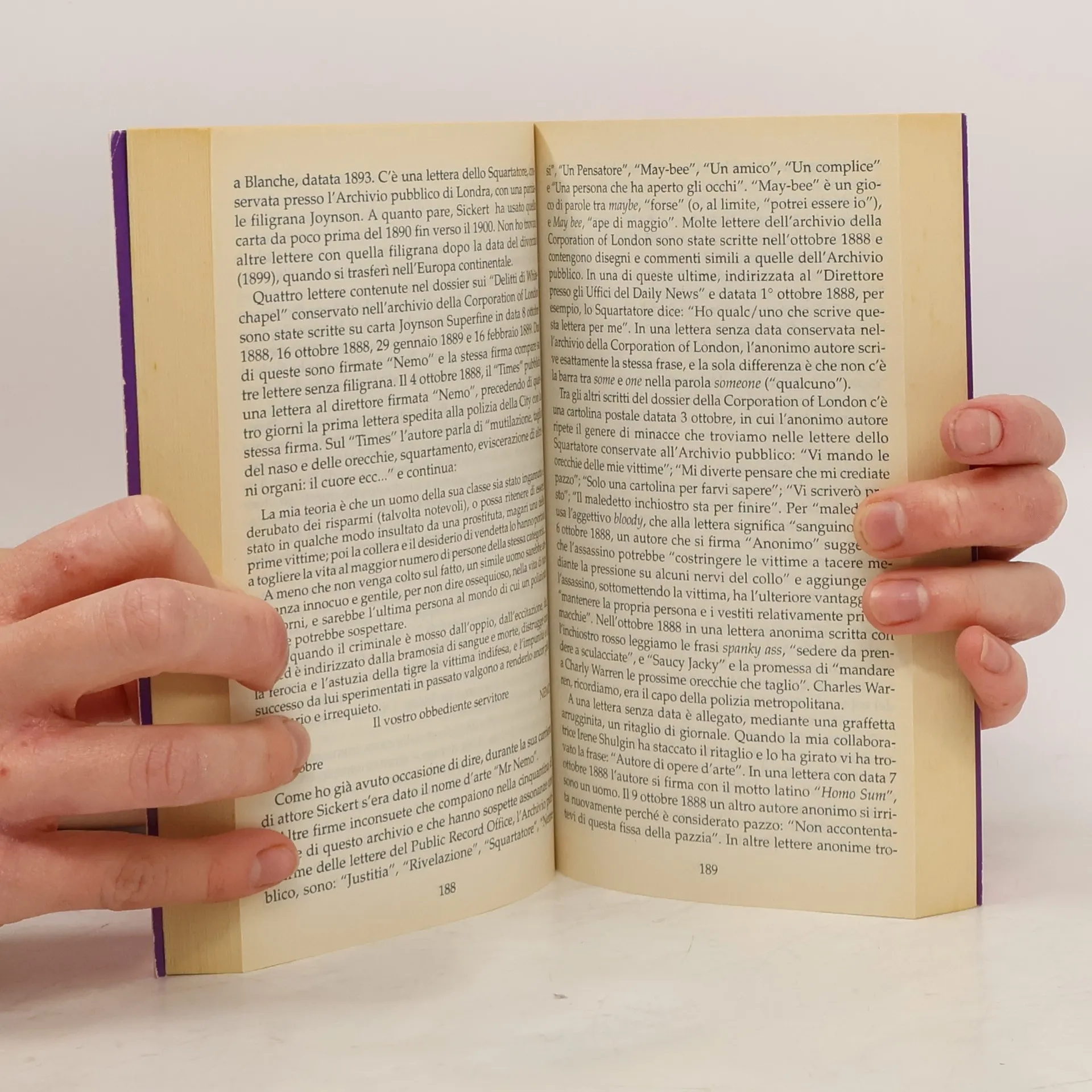 A Londra, nel quartiere di Whitechapel, tra l'agosto e il novembre del 1888 cinque donne vennero barbaramente uccise. Il misterioso autore di quegli efferati crimini è passato alla storia, e alla leggenda, come Jack lo Squartatore. Dopo più di cent'anni, finalmente la sua identità è stata svelata. Non da uno storico, non da un criminologo, non da un investigatore. Da una scrittrice. Utilizzando le più sofisticate tecnologie del XXI secolo, unite alla sua straordinaria intuizione e a una profonda conoscenza del mondo del crimine, Patricia Cornwell ha risolto un mistero che ha resistito per oltre un secolo. Il più famoso serial killer della storia ha così un nome e un volto: quello del pittore londinese Walter Sickert. Dopo averci affascinati con le avventurose vicende di Kay Scarpetta e di Judy Hammer, la Cornwell ci regala un nuovo libro altrettanto coinvolgente e tragicamente autentico.