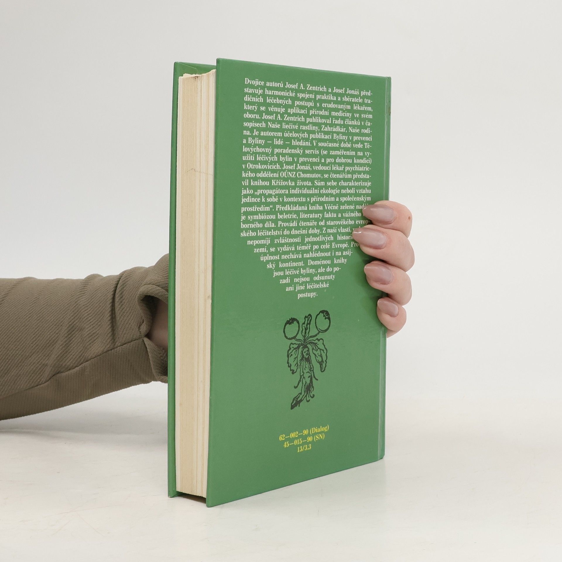 Publikace seznamuje s vývojem lidového přírodního léčitelství, s jeho způsoby, prostředky a recepty. Dotisk v r. 1990 (brož.) Dvojice autorů Josef A. Zentrich a Josef Jonáš představuje harmonické spojení praktika a sběratele tradičních léčebných postupů s erudovaným lékařem, který se věnuje aplikaci přírodní medicíny ve svém oboru. Josef A. Zentrich publikoval řadu článků v časopisech Naše liečivé rastliny, Zahrádkár, Naše rodina. Je autorem účelových publikací Byliny v prevenci a Byliny - lidé - hledání. V současné době vede Tělovýchovný poradenský servis (se zaměřením na využití léčivých bylin v prevenci a pro dobrou kondici) v Otrokovicích. Josef Jonáš, vedoucí lékař psychiatrického oddělení OÚNZ Chomutov, se čtenářům představil knihou Křížovka života. Sám sebe charakterizuje jako "progragátora individuální ekologie neboli vztahu jedince k sobě v kontextu s přírodním a společenským prostředím". Předkládaná kniha Věčně zelené naděje je symbiózou beletrie, literatury faktu a vážného odborného díla. Provádí čtenáře od starověkého evropského léčitelství do dnešní doby. Z naší vlasti, ve které nepomíjí zvláštnosti jednotlivých historických zemí, se vydává téměř po celé Evropě. pro úplnost nechává nahlédnout i a asijský kontinent. Doménou knihy jsou léčivé byliny, ale do pozadí nejsou odsunuty ani jiné léčitelské postupy.