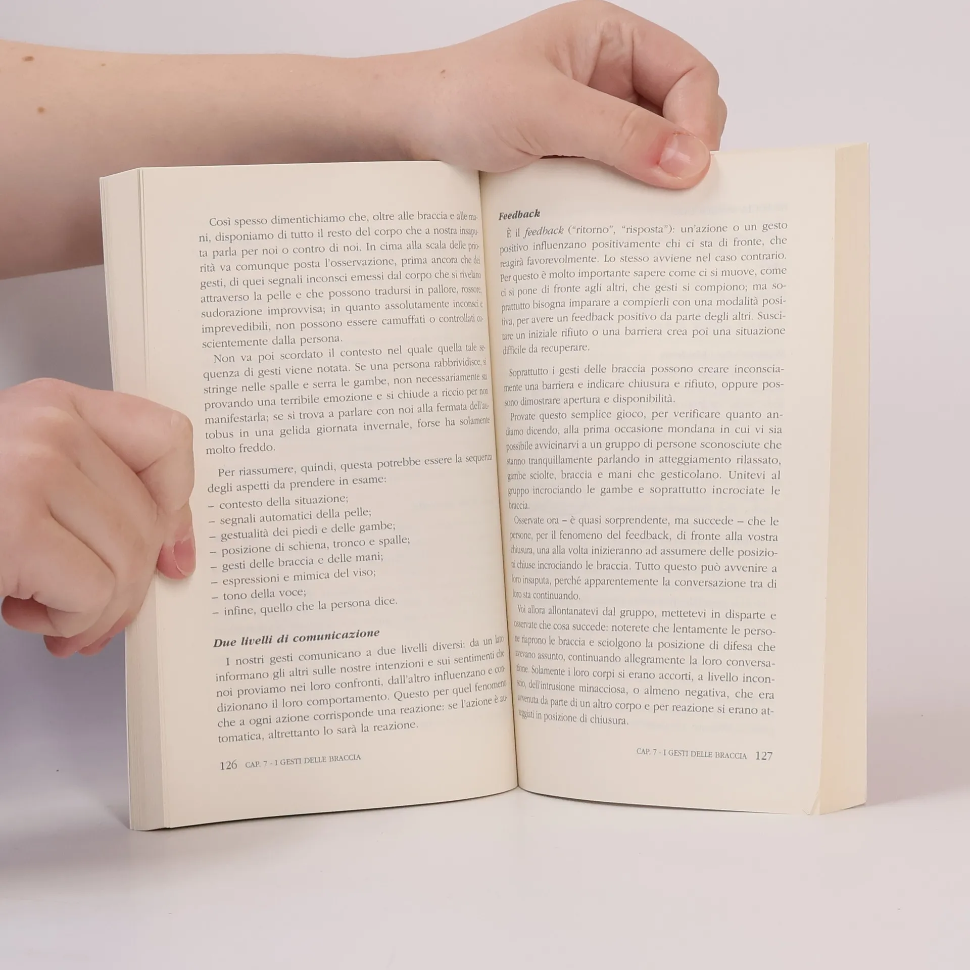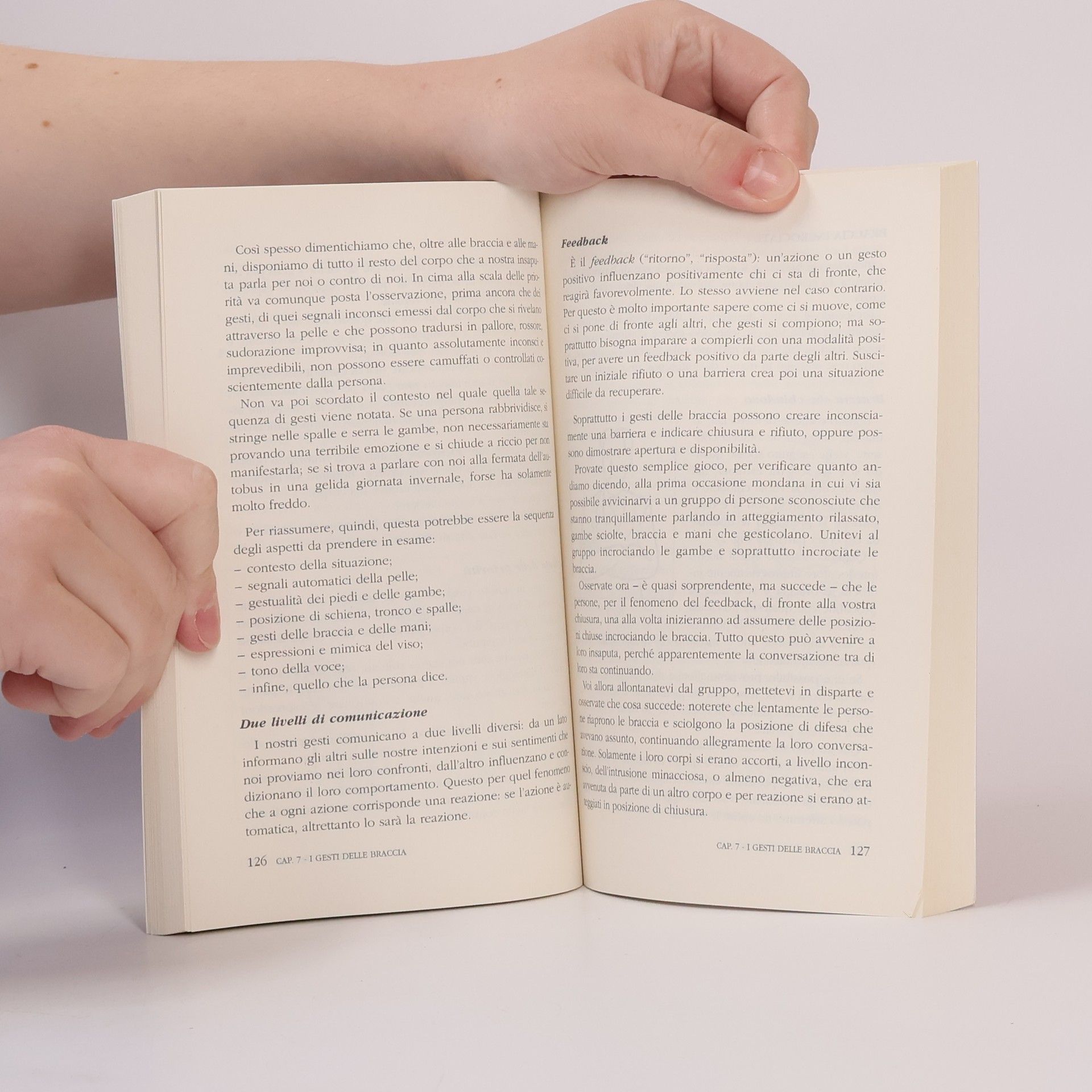 Giocherellare in continuazione con l’anello mentre qualcuno ci parla, allontanare un invisibile granello di polvere dalla giacca prima di rispondere a una domanda, accarezzarsi il mento in attesa di prendere una decisione… Sono tanti i gesti che spesso compiamo senza rendercene conto, eppure ognuno di essi ha un significato preciso e rivela spesso qualcosa di importante. Le parole possono ingannare; il corpo, però, non sa mentire. Parla una lingua che dà voce alle emozioni più profonde e più vere. Esprime quello che le parole non sanno o non vogliono dire. Diventa allora importante imparare a cogliere e interpretare il modo in cui una persona ci stringe la mano, si siede di fronte a noi o capire perché continua a toccarsi il volto mentre ci parla. I suoi gesti possono rivelarci se dietro all’adesione a una nostra proposta si cela una sincera approvazione, un disagio più o meno profondo oppure se il nostro interlocutore ci sta spudoratamente mentendo. Ma non solo. Conoscere il linguaggio segreto del corpo significa anche imparare a conoscere meglio noi stessi, scoprire quando ricorriamo ad atteggiamenti di chiusura o riusciamo a esprimere sicurezza e decisione. E può aiutarci a trovare strumenti e modi per rendere la nostra comunicazione più vera e efficace.