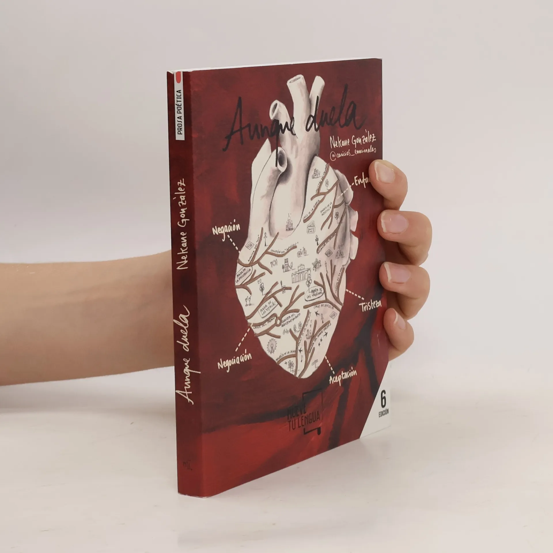 Este no es un libro de desamor, es un libro de amor, del más fuerte y el más importante. Y es que hay veces que tienen que rompernos el corazón para que salga el amor más fuerte y más importante de todos: el amor propio. Existen dos tipos de duelo: sufrir por lo que pasó y sufrir por lo que no pasó. Y, ¿qué duele más? ¿Aquello que ocurrió o aquello que nunca llegó a ocurrir? Nekane González, más conocida en redes como @caricias_emocionales publica con MueveTuLengua por primera vez para plantearnos estas preguntas y a su vez, nos da las claves y nos lleva de la mano por el viaje que supone superar un duelo amoroso. Como esa amiga que nos dice lo que a veces no queremos oír, como un viaje no lineal donde cada parada que hacemos es una fase a vivir y a superar, Aunque duela transita de la poesía a la prosa poética, pasando por un sinfín de consejos que intentarán reconstruir corazones rotos, abatidos, detonados.