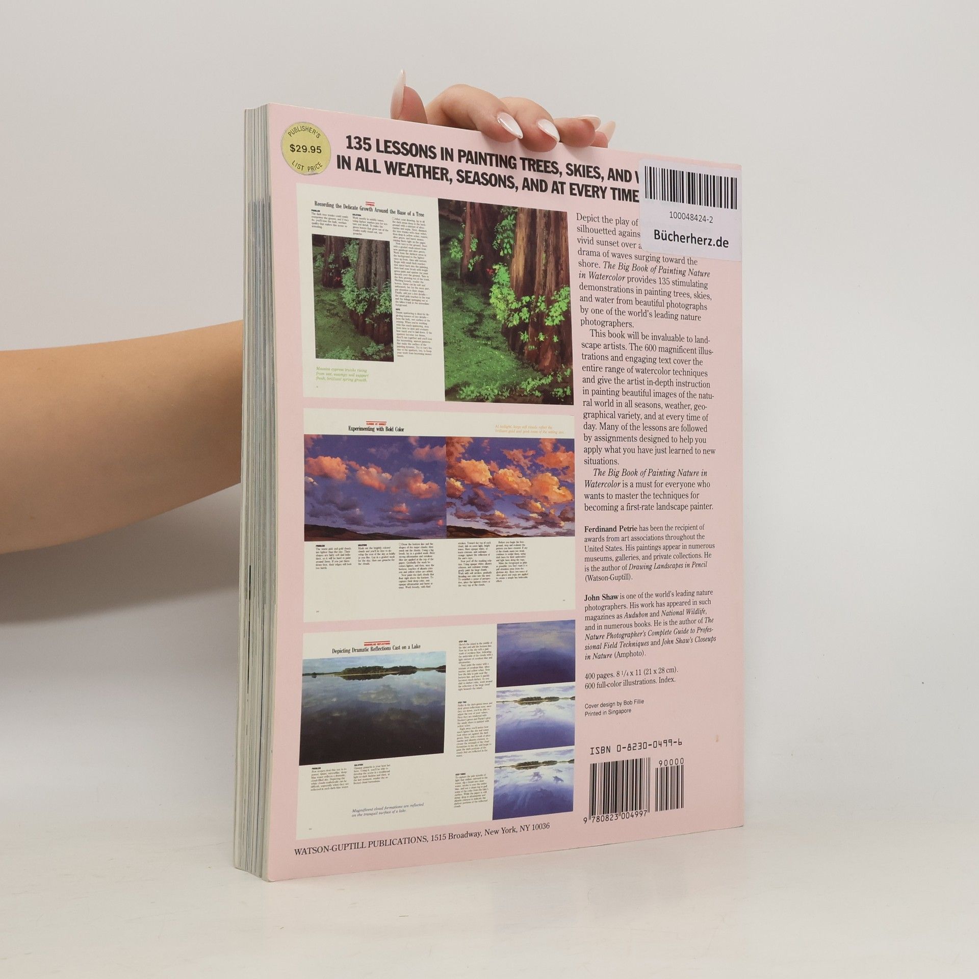 Depict the play of light on spring foliage silhouetted against a dark sky. Paint a vivid sunset over a lake. Capture the drama of waves surging toward the shore. The Big Book of Painting Nature in Watercolor provides 135 stimulating demonstrations in painting trees, skies, and water from beautiful photographs by one of the world's leading nature photographers.This book will be invaluable to landscape artists. The 600 magnificent illustrations and engaging text cover the entire range of watercolor techniques and give the artist in-depth instruction in painting beautiful images of the natural world in all seasons, weather, geographical variety, and at every time of day. Many of the lessons are followed by assignments designed to help you apply what you have just learned to new situations.The Big Book of Painting Nature in Watercolor is a must for everyone who wants to master the techniques for becoming a first-rate landscape painter.