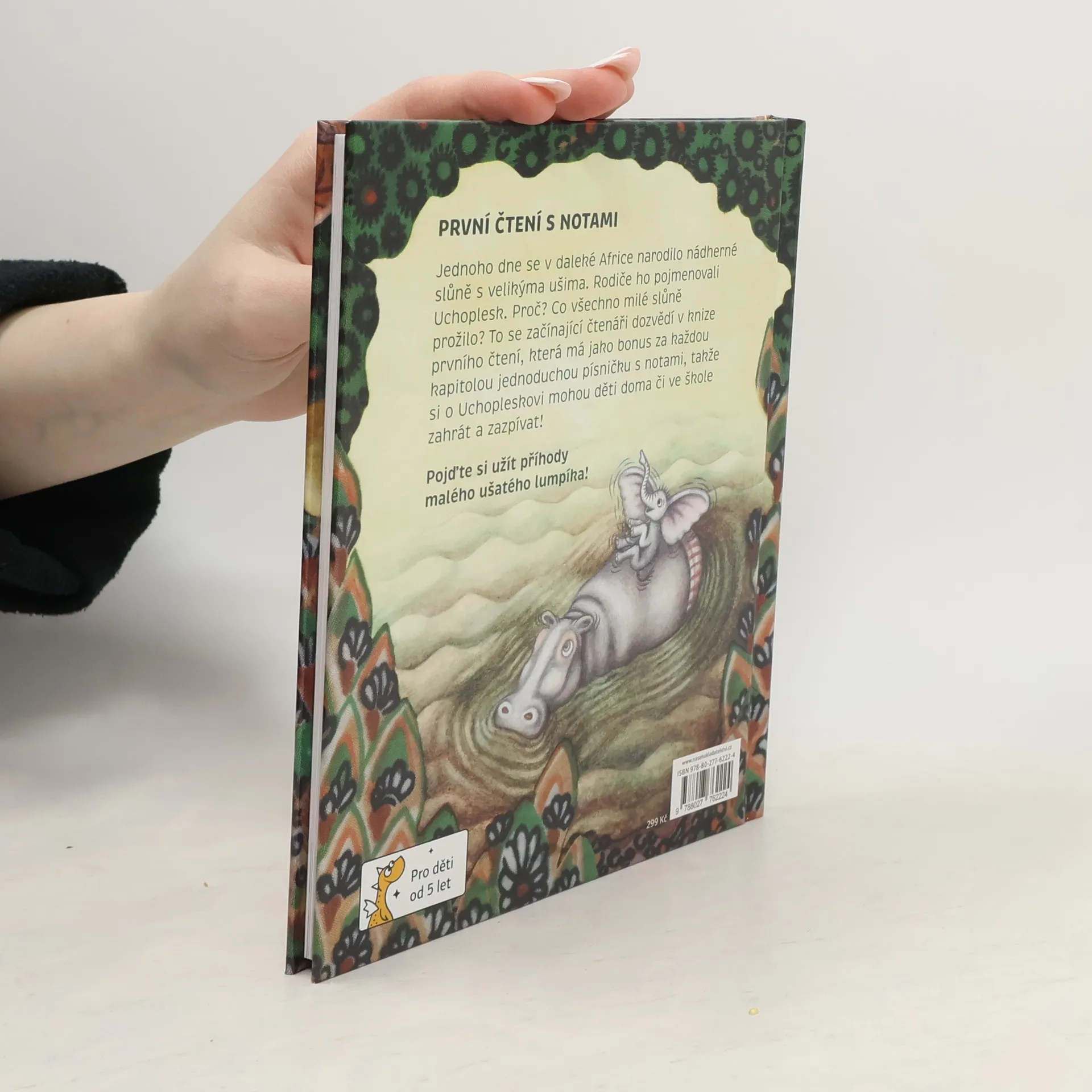 PRVNÍ ČTENÍ S NOTAMI Jednoho dne se v daleké Africe narodilo nádherné slůně s velikýma ušima. Rodiče ho pojmenovali Uchoplesk. Proč? Co všechno milé slůně prožilo? To se začínající čtenáři dozvědí v knize prvního čtení, která má jako bonus za každou kapitolou jednoduchou písničku s notami, takže si o Uchopleskovi mohou děti doma či ve škole zahrát a zazpívat! Pojďte si užít příhody malého ušatého lumpíka!