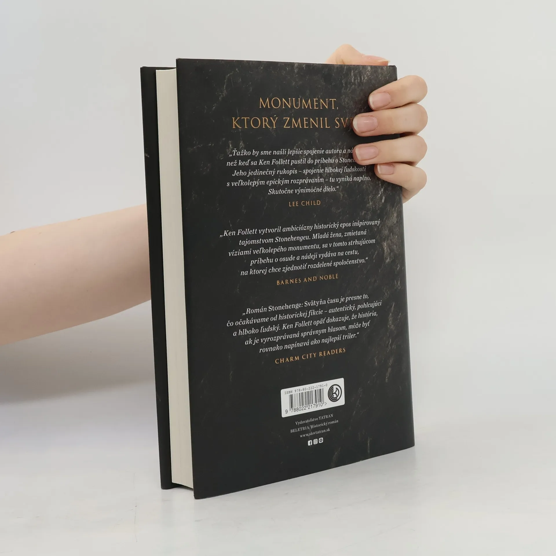 Epos o zrode monumentu, ktorý spojil rozdelený svet Seft, mladý kopáč, prichádza na Veľkú pláň, aby vymenil vydolovaný pazúrik a našiel tam Neen, dievča z rodiny pastierov, ktoré miluje. Jej príbuzní ho prichýlia, a tak u nich Seft nájde bezpečné útočisko pred krutým otcom a bratmi. Neenina sestra Joia je kňažka s veľkolepou víziou a jej schopnosti viesť ľudí sa nik nevyrovná. Ako dieťa očarene sledovala obrad letného slnovratu a odvtedy sníva o ohromnom monumente postavenom z tých najväčších kameňov na svete – kruhu, ktorý by spojil rozdelené kmene. No krajina vysychá, medzi ľuďmi rastie strach a napätie. Spory sa menia na nepriateľstvo a jediný násilný čin môže rozpútať vojnu. Stonehenge je veľký príbeh o sile snov, o odvahe meniť svet a o zrode legendy, ktorá prežila tisícročia. Ken Follett pozýva čitateľov na výpravu k počiatkom dejín, kde sa z túžby a odvahy rodili prvé civilizácie.