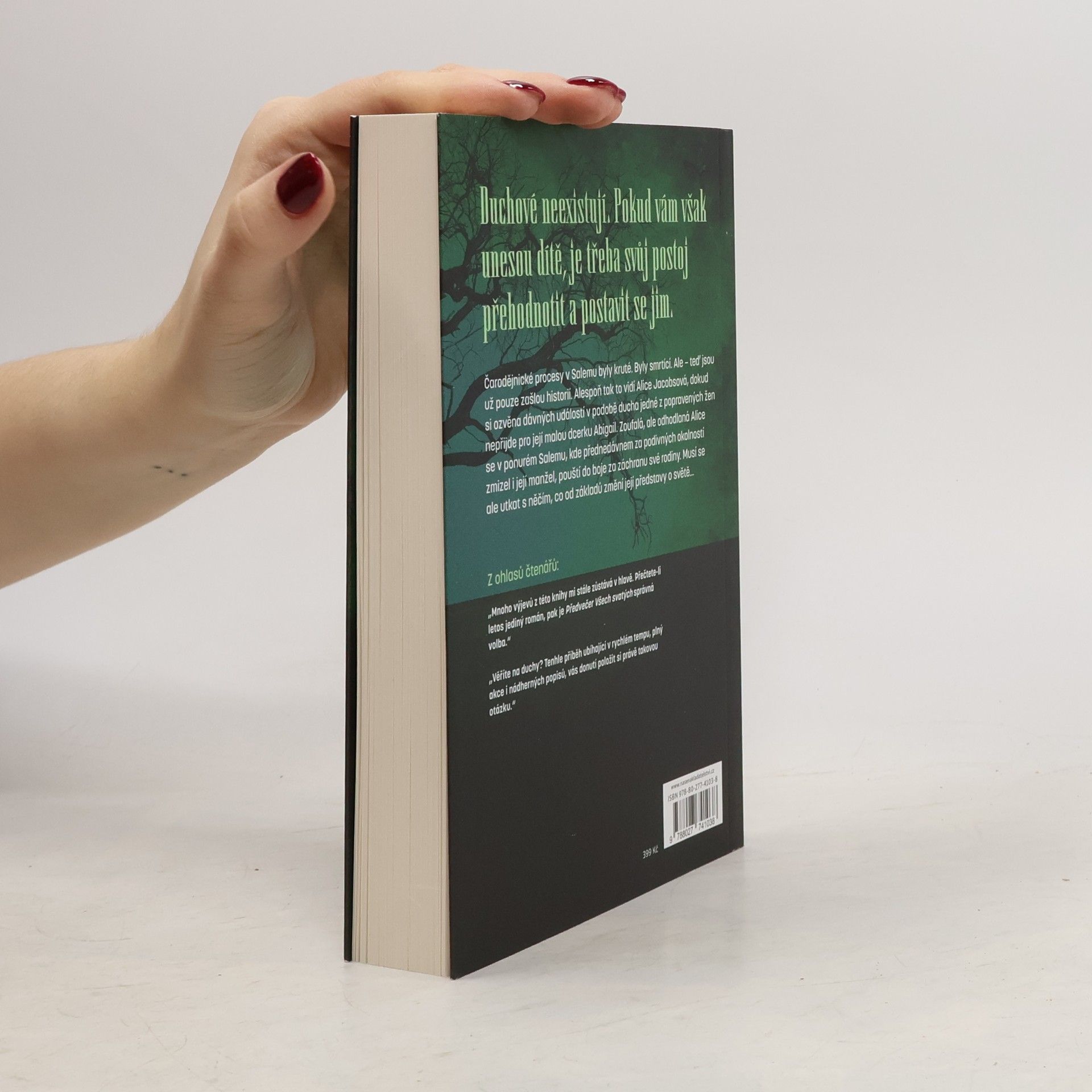 Alice Jasobsová nevěří na duchy… dokud jeden z nich neunese její dceru. Když její manžel zmizí při pátrání po sérii zvláštních a hrůzných událostí v hýřícím přístavním městě Salem, Alice je nucena vzít svou malou dcerku Abigail s sebou z Bostonu a sama se pustit do pátrání. Ale brzy se dozví o děsivém proroctví, na které se město připravuje po setmění: sto let poté, co byla žena jménem Rebeka Haleová pověšena za čarodějnictví, má její pomstychtivý duch během svátku Všech svatých povstat z pekla, aby uloupil duše salemských dětí. Alice považuje staré legendy za hloupé povídačky, dokud přízračná žena z kouře a mlhy neukradne Abigail z její postýlky. Zoufalá touhou najít svou dcerku dřív, než vyjde slunce a ona bude ztracena navždy, svádí Alice boj o čas v dechberoucím dobrodružství, které ji zavede ze zapomenutých žalářů a ponurých hřbitovů až k strašidelným lesům Šibeničního vrchu. Spolu s Jonasem Hobbsem – nespoutaným námořníkem, jenž pátrá po svém vlastním dítěti – bojuje na život a smrt s nadpřirozenými silami a odhalí temné tajemství, které může být klíčem k záchraně Abigailiny duše… ovšem pokud dokáže přežít nejděsivější noc svého života.