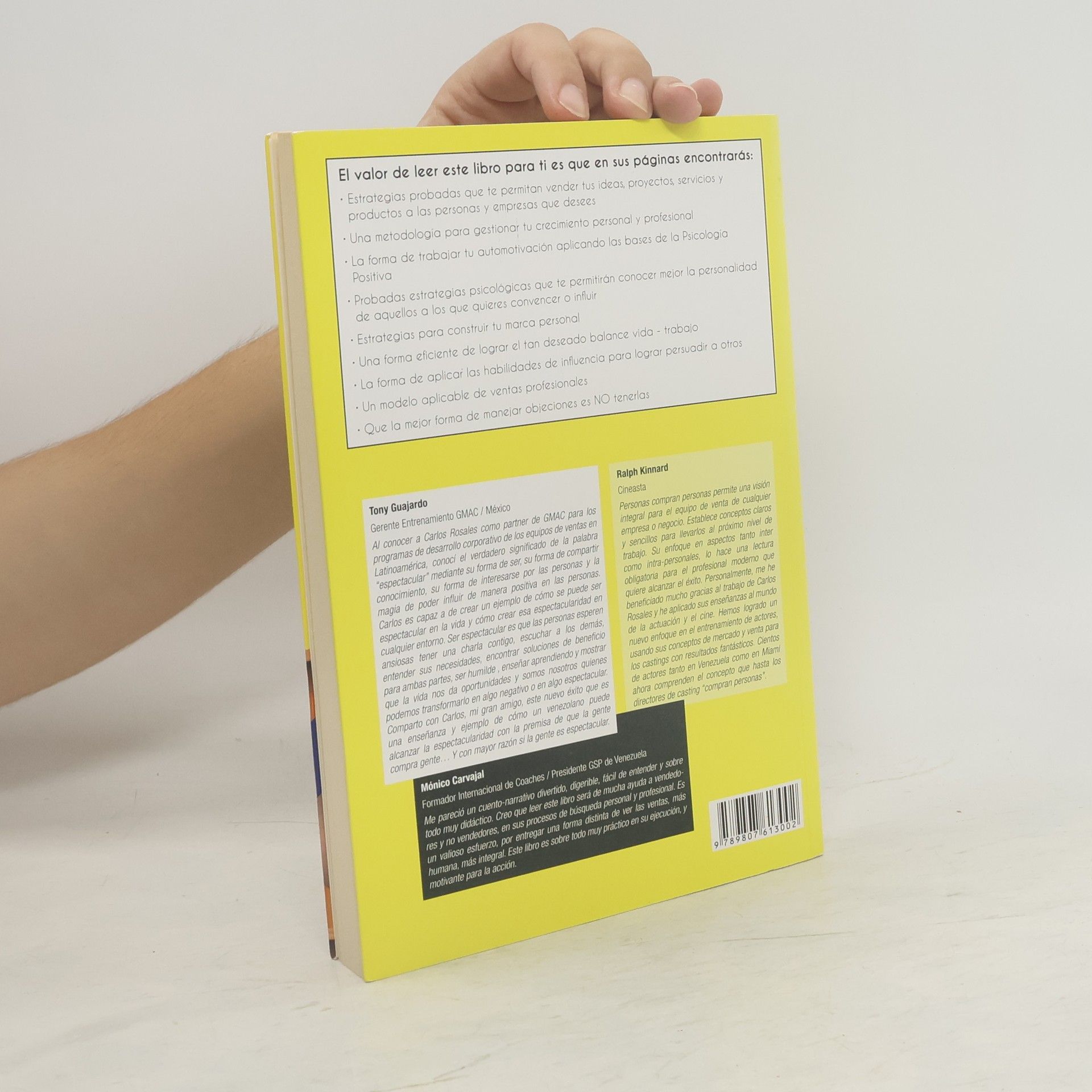 El valor de leer este libro para ti es que en sus páginas encontraras: Estrategias probadas que te permitan vender tus ideas, proyectos, servicios y productos a las personas y empresas que desees. Una metodología para gestionar tu crecimiento personal y profesional. La forma de trabajar tu automotivación aplicando las bases de la psicología positiva. Probadas estrategia psicológica que te permitirán conocer mejor la personalidad de aquellos a los que quieres convencer o influir. Estrategias para construir tu marca personal. Una forma eficiente de lograr el tan deseado balance vida – trabajo. La forma de aplicar las habilidades de influencia para lograr persuadir a otros. Un modelo aplicable de ventas profesionales. Que la mejor forma de manejar objeciones es no tenerlas.