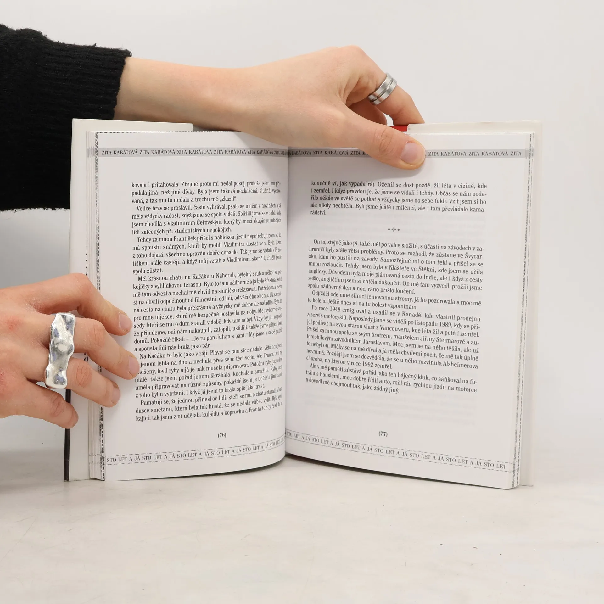 Blíží se sté narozeniny poslední žijící hvězdy prvorepublikového filmu paní Zity Kabátové a tak, jako tomu bylo v případě režiséra Otakara Vávry, i ona cítí povinnost rozloučit se se čtenáři knihou, která shrnuje její bohatý život a ve které prozradí i to, o čem dosud mlčela. Její poslední kniha nese už ve svém názvu základní poselství; kdo jiný by měl podat svědectví o událostech mnoha desetiletí, než právě Zita Kabátová? Sto let a já je unikátním ohlédnutím za životem ženy, která jako jedna z vyvolených psala historii československého filmu.