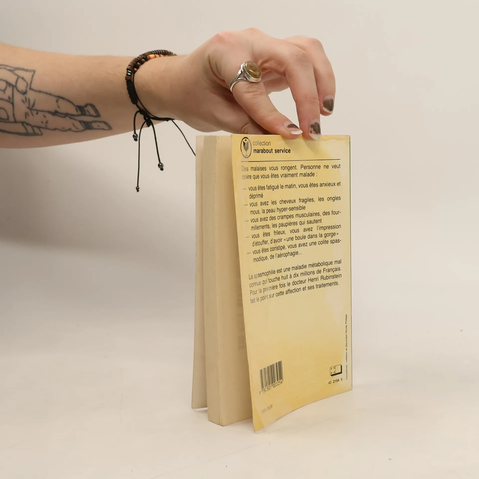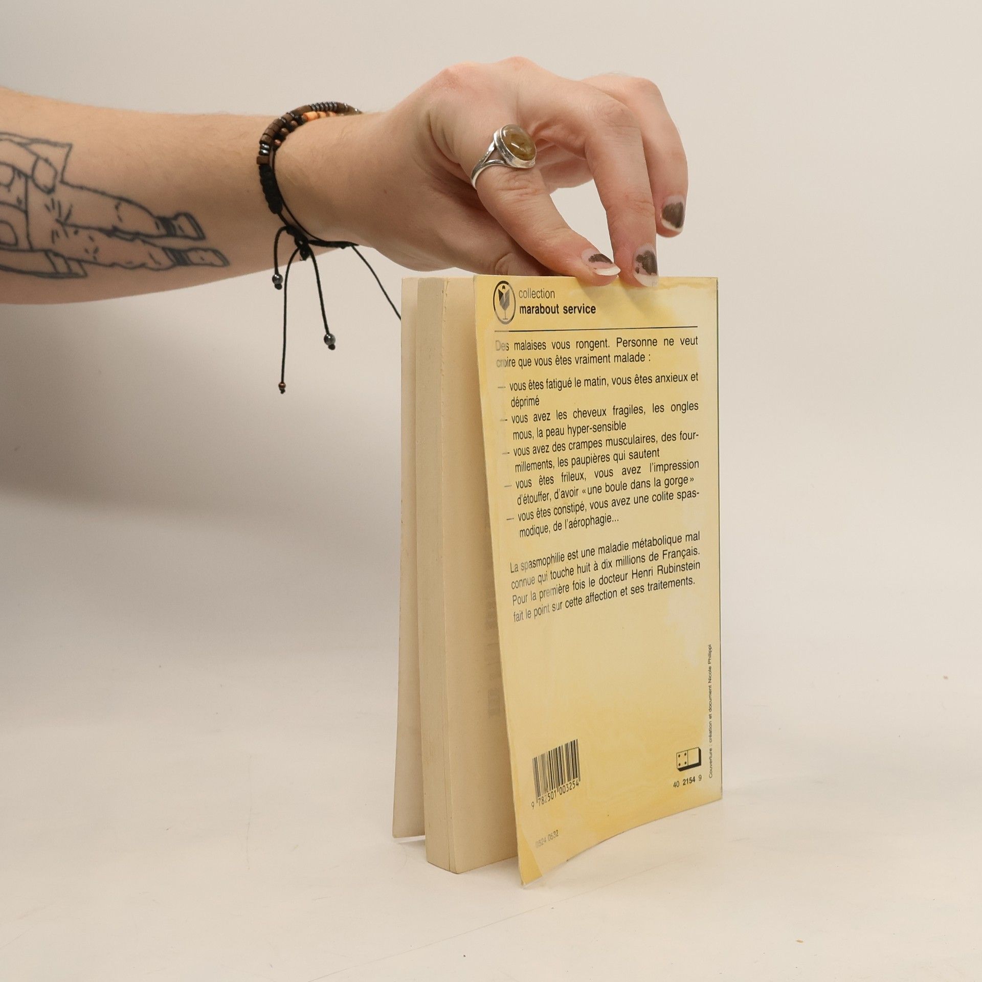 Des malaises vous rongent. Personne ne veut croire que vous êtes vraiment malade : vous êtes fatigué le matin, vous êtes anxieux et déprimé vous avez les cheveux fragiles, les ongles mous, la peau hyper-sensible vous avez des crampes musculaires, des fourmillements, les paupières qui sautent vous êtes frileux, vous avez l'impression d'étouffer, d'avoir « une boule dans la gorge» vous êtes constipé, vous avez une colite spas modique, de l'aérophagie... La spasmophilie est une maladie métabolique mal connue qui touche huit à dix millions de Français. Pour la première fois le docteur Henri Rubinstein fait le point sur cette affection et ses traitements.