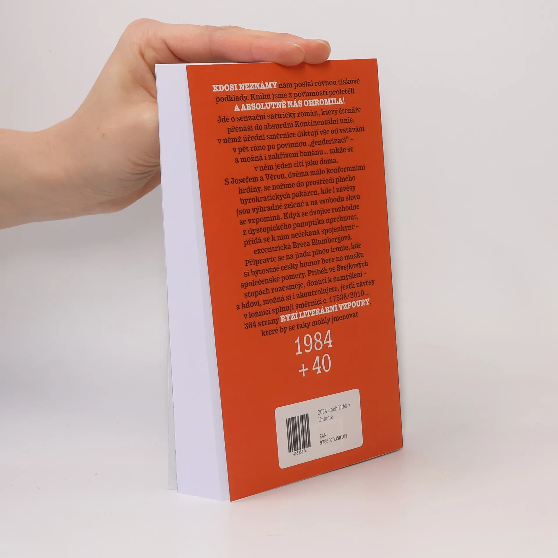 KDOSI NEZNÁMÝ nám poslal rovnou tiskové podklady. Knihu jsme z povinnosti proletěli – A ABSOLUTNĚ NÁS OHROMILA! Jde o senzační satirický román, který čtenáře přenáší do absurdní Kontinentální unie, v němž úřední směrnice diktují vše od vstávání v pět ráno po povinnou „genderizaci“ – a možná i zakřivení banánu... takže se v něm jeden cítí jako doma. S Josefem a Věrou, dvěma málo konformními hrdiny, se noříme do prostředí plného byrokratických pakáren, kde i závěsy jsou výhradně zelené a na svobodu slova se vzpomíná. Když se dvojice rozhodne z dystopického panoptika uprchnout, přidá se k nim nečekaná spojenkyně – excentrická Bréca Blumbergová. Připravte se na jízdu plnou ironie, kde si bytostně český humor bere na mušku vlastní společenské poměry. Příběh ve Švejkových stopách rozesměje, donutí zamyšlení – a kdoví, možná si i zkontrolujete, jestli závěsy v ložnici splňují směrnici č. 17538/2010. 364 strany ryzí literární vzpoury, které by se taky mohly jmenovat 1984 + 40