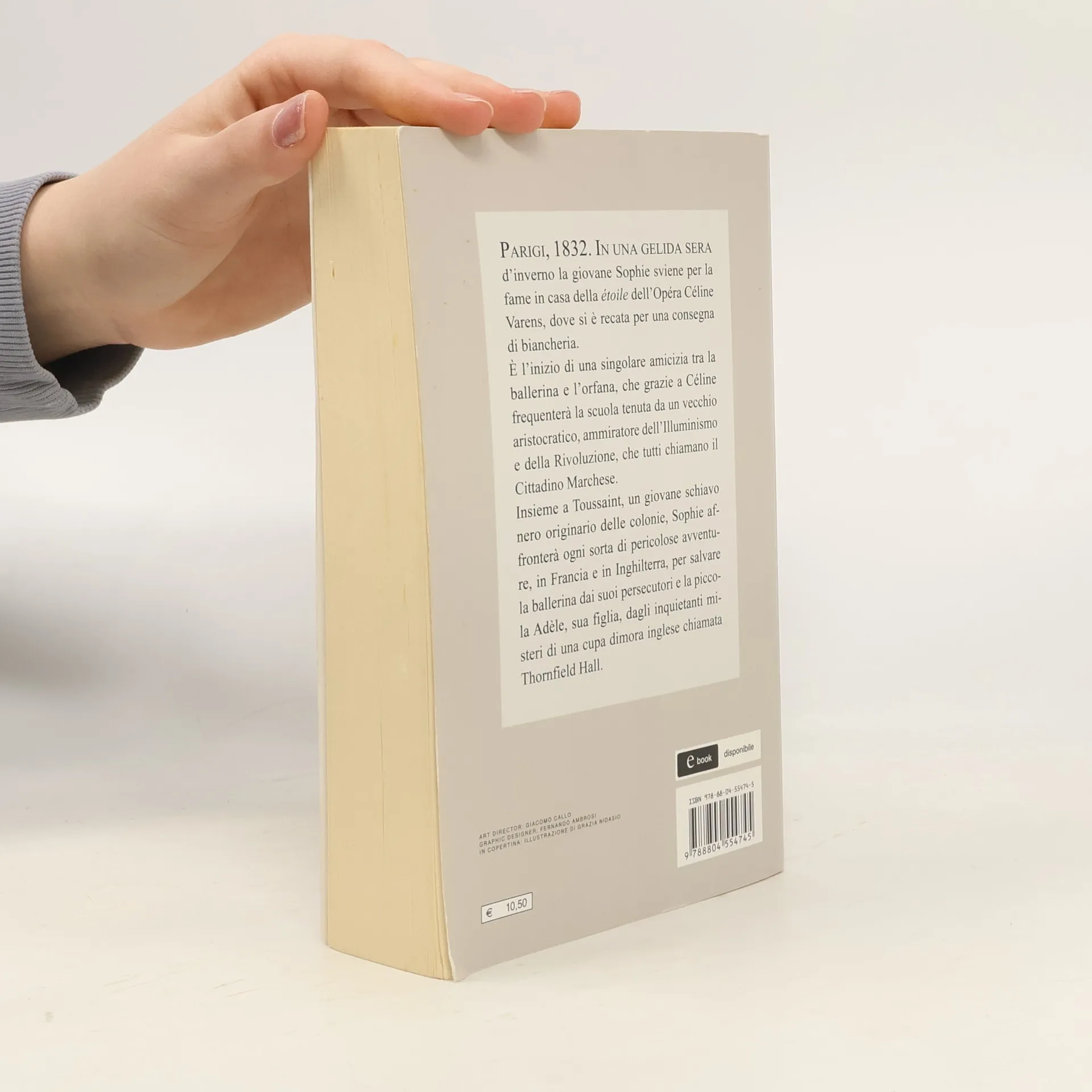 La precedente edizione con ISBN 8804554746 / 9788804554745 e copertina diversa si trova qui: https://www.goodreads.com/book/show/8... La storia di Sophie Gravillon comincia nella Parigi colta, spietata e rivoluzionaria di primo Ottocento e rischia di concludersi all'Ospedale di mendicità quando a otto anni rimane orfana. Interviene però una famosa stella dell'Opera, Céline, che finge di assumerla come bambinaia della figlia Adele. A casa sua Sophie conoscerà Toussaint, un ragazzino proveniente dalle Antille, e insieme a lui avrà il privilegio di essere istruita dal padrino di Céline, un vecchio marchese dalle idee illuministe. Alla morte del marchese seguiranno una serie di avventure fra Francia e Inghilterra. Un romanzo storico denso di riferimenti alla cultura del tempo. Età di lettura: da 12 anni.