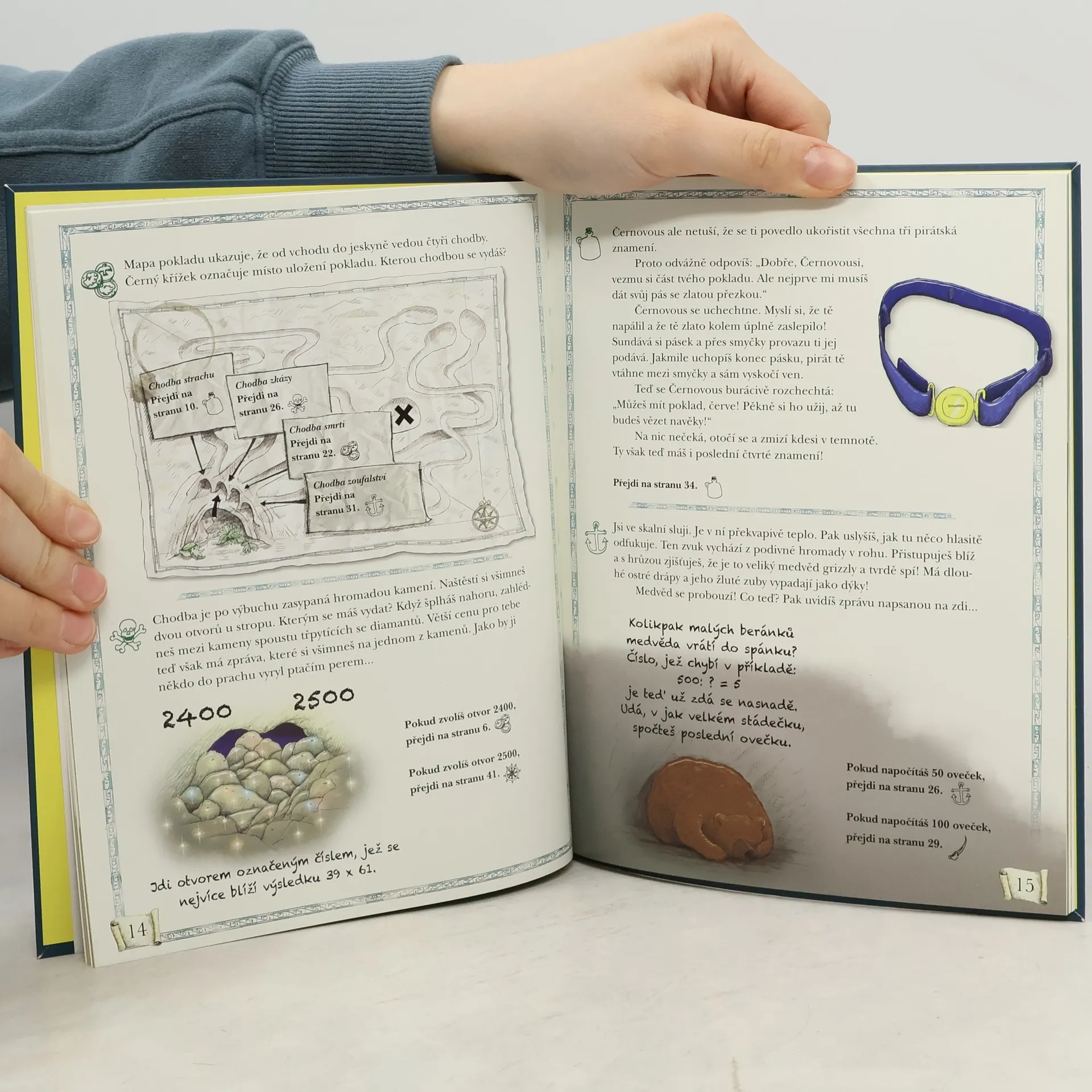 Knížka Tajemná jeskyně, kterou napsal David Glover, přenese malého čtenáře do jeskyně, kam se vydá po stopách pirátského pokladu. Napínavý příběh ho rychle vtáhne do děje. Podaří se mu pomocí matematických znalostí a bystré mysli přelstít pirátské bratry a získat jejich čtyři tajná znamení – klíč k pokladu? Jestli někdy zaváhá, nevadí, je tu ještě papoušek Amígo, která mu rád podá pomocné křídlo. Knížky z edice Dobrodružná matematika jsou specifické svou formou – nečtou se chronologicky po stránkách za sebou, ale čtenář listuje a posupuje podle toho, jak řeší jednotlivé úkoly. Se správnou odpovědí se posune dál v ději příběhu, vinou špatné odpovědi zabloudí, ale je nasměrován k opětovnému řešení úlohy. Rozvíjeno je: - využívání znalostí z oblasti matematiky - sčítání, odčítání, násobení a dělení - desetinná čísla, zlomky, procenta -- zdroj: www.knihcentrum.cz --