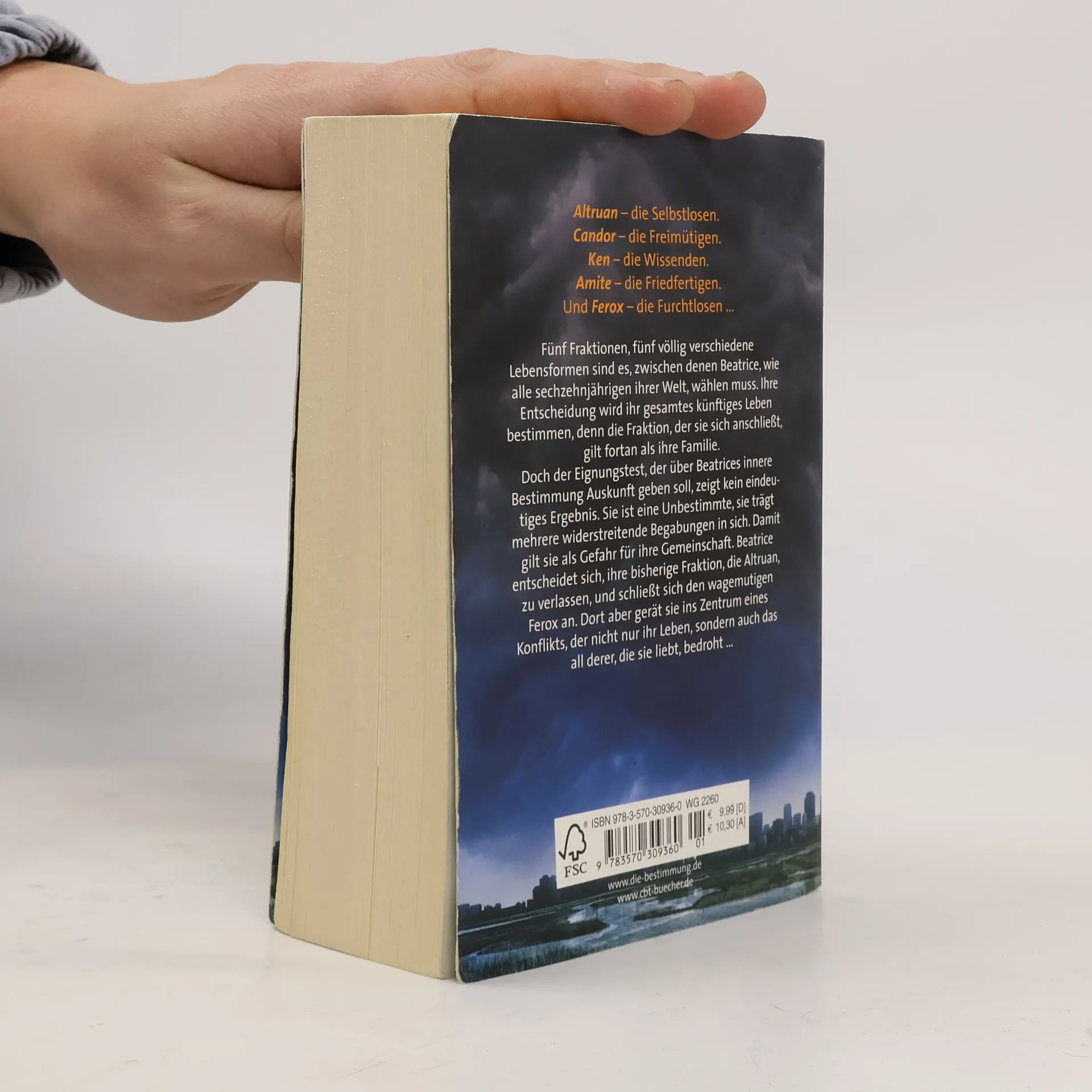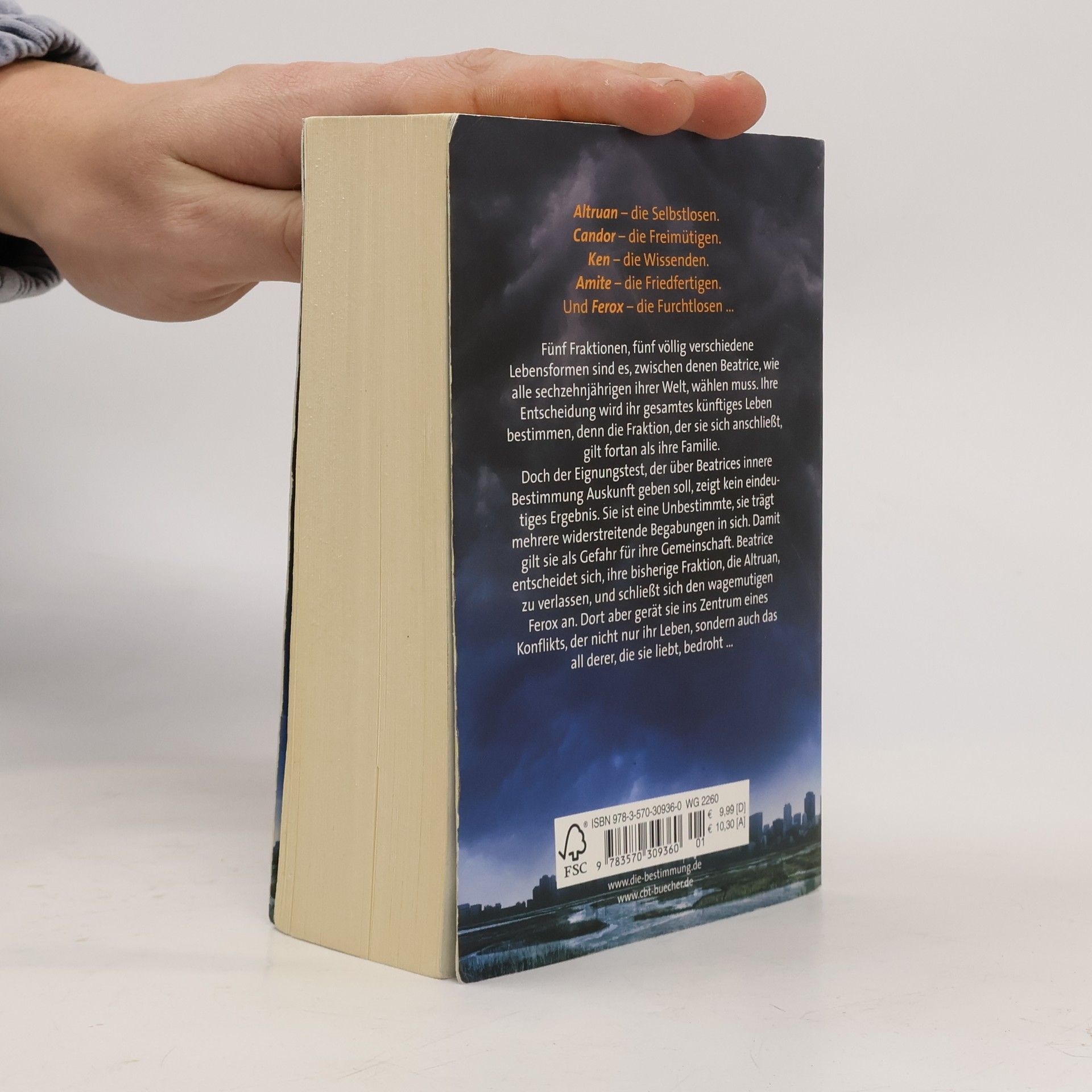 Der SPIEGEL-Bestseller: Ein aufwühlender, fesselnder Roman über die Welt von morgen. Altruan – die Selbstlosen. Candor – die Freimütigen. Ken – die Wissenden. Amite – die Friedfertigen. Und Ferox – die Furchtlosen … Fünf Fraktionen, fünf verschiedene Lebensformen sind es, zwischen denen Beatrice wählen muss. Ihre Entscheidung wird ihr gesamtes künftiges Leben bestimmen, denn die Fraktion, der sie sich anschließt, gilt fortan als ihre Familie. Doch der Test, der über Beatrices innere Bestimmung Auskunft geben soll, zeigt kein eindeutiges Ergebnis. Sie ist eine Unbestimmte. Die aber gelten in ihrer Welt als hoch gefährlich ... Die grandiose Trilogie „Die Bestimmung“ von Veronica Roth ist eine unendlich spannende Zukunftsvision voller überraschender Wendungen, heftiger Emotionen und kraftvoller Einblicke in die menschliche Natur – fesselnd bis zur letzten Seite! Alle Bücher der Die-Bestimmung-Reihe: Band 1 – Die BestimmungBand 2 – Tödliche WahrheitBand 3 – Letzte EntscheidungFours Geschichte („Die Bestimmung“ aus Fours Pespektive)