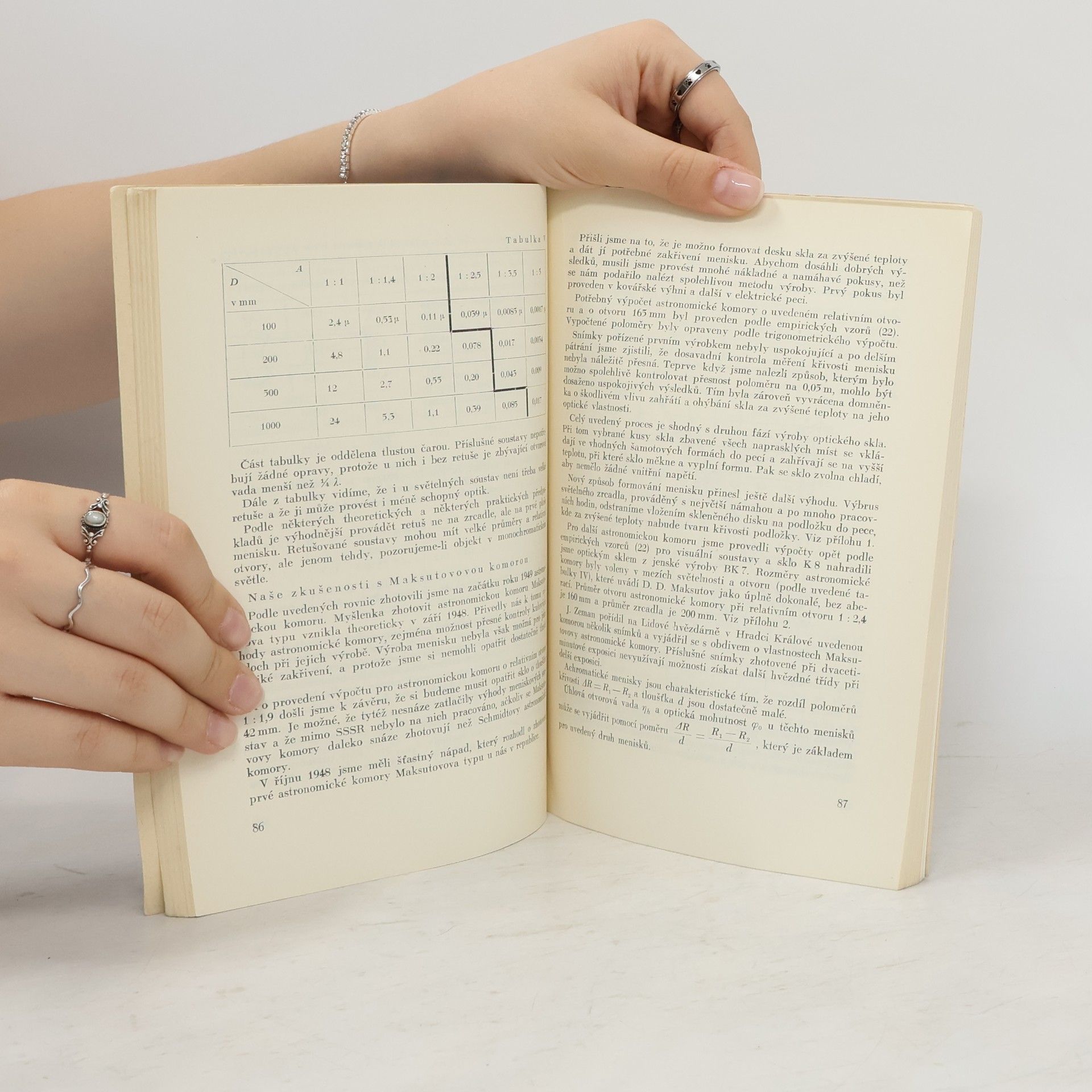 Autoři knihy vyhotovili Maksutovovu komoru, která byla namontována na velký Zeissův reflektor na Skalnatém plese, a tím dali našim astronomům přístroj podobný dalekohledům, jimiž sovětstí hvězdáři dosahují vynikajících výsledků. Autoři vykládají v brožuře vlastní zkušenosti, získané při výrobě optických součástí astronomických přístrojů. Uvádějí do optiky po stránce theoretické i praktické. Probírají jednotlivé dalekohledy (Galileův a Keplerův, Newtonův, Cassegrainův a Gregoryův), dále Schmidtovu astronomickou komoru a její modifikaci a různé okuláry i objektivy dalekohledů. Zabývají se Maksutovými meniskovými soustavami a zkoušením astronomických zrcadel podle method D.D. Maksutova. V kapitole o astronomických žebrovaných zrcadlech vysvětlují vlastní konstrukci těchto zrcadel.