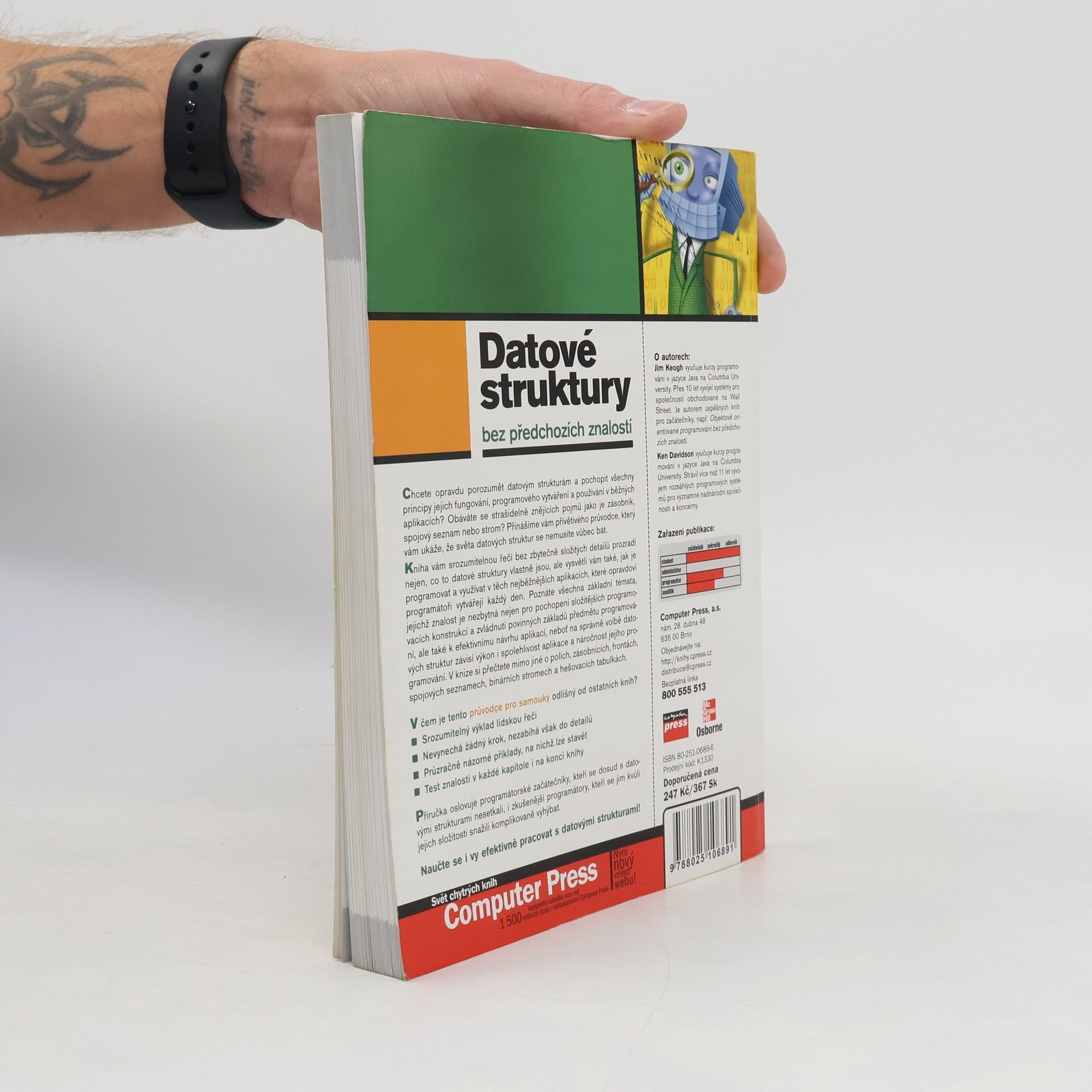 Chcete opravdu porozumět datovým strukturám a pochopit všechny principy jejich fungování, programového vytváření a používání v běžných aplikacích? Obáváte se strašidelně znějících pojmů jako je zásobník, spojový seznam nebo strom? Přinášíme vám přívětivého průvodce, který vám ukáže, že světa datových struktur se nemusíte vůbec bát. Kniha vám srozumitelnou řečí bez zbytečně složitých detailů prozradí nejen, co to datové struktury vlastně jsou, ale vysvětlí vám také, jak je programovat a využívat v těch nejběžnějších aplikacích, které opravdoví programátoři vytvářejí každý den. Poznáte všechna základní témata, jejichž znalost je nezbytná nejen pro pochopení složitějších programovacích konstrukcí a zvládnutí povinných základů předmětu programování, ale také k efektivnímu návrhu aplikací, neboť na správně volbě datových struktur závisí výkon i spolehlivost aplikace a náročnost jejího programování. V knize si přečtete mimo jiné o polích, zásobnících, frontách, spojových seznamech, binárníc