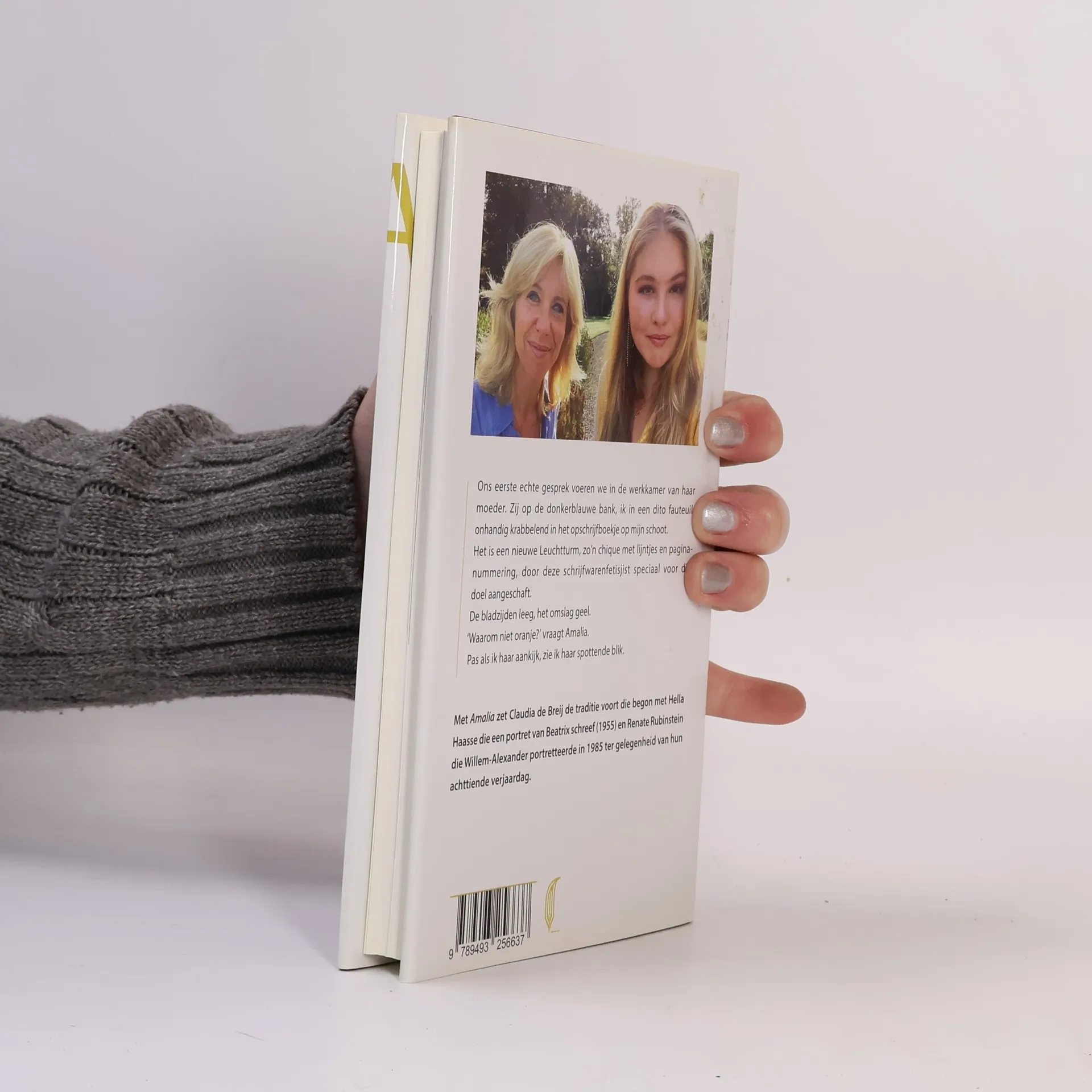 Ons eerste echte gesprek voeren we in de werkkamer van haar moeder. Zij op de donkerblauwe bank, ik in een dito fauteuil, onhandig krabbelend in het opschrijfboekje op mijn schoot. 0Het is een nieuwe Leuchtturm, zo?n chique met lijntjes en paginanummering, door deze schrijfwarenfetisjist speciaal voor dit doel aangeschaft. 0De bladzijden leeg, het omslag geel. "Waarom niet oranje?" vraagt Amalia. Pas als ik haar aankijk, zie ik haar spottende blik.0Met 'Amalia' zet Claudia de Breij de traditie voort die begon met Hella Haasse die een portret van Beatrix schreef (1955) en Renate Rubinstein die Willem-Alexander portretteerde in 1985 ter gelegenheid van hun achttiende verjaardag. 0De prinses heeft Claudia de Breij meegenomen naar plekken die voor haar belangrijk zijn, waaronder de Koninklijke Stallen, het strand en haar school. Ze hebben gesprekken gevoerd over haar motivatie om af te zien van haar toelage, over zingen voor jezelf, cocktails maken, over hoe paardrijden helpt je hoofd leeg te maken en over de voor- en nadelen van sociale media. Ook kwam aan de orde wat het koningschap en haar toekomstige rol momenteel voor haar betekenen. Het boek laat zien wie Amalia nu is door de ogen van Claudia de Breij.0Het boek bevat foto?s uit het privéarchief van de prinses.