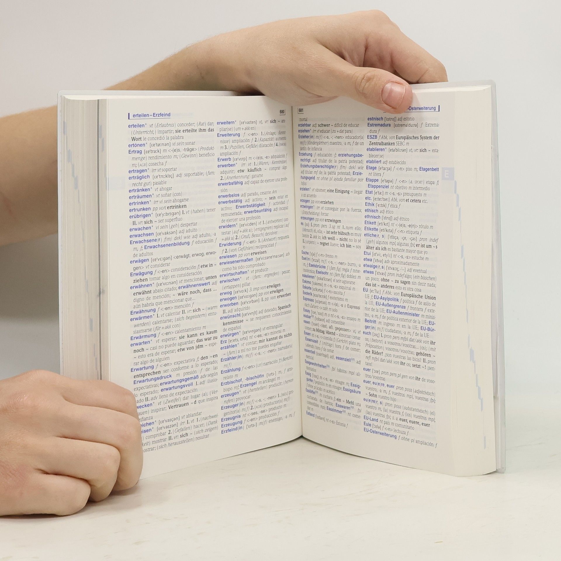 Die Neuauflage des Standardwörterbuchs (vgl. auch die Französisch und ItalienischAusgaben in dieser Nr.) ist bis auf 2 Neuerungen identisch mit der Vorauflage aus dem Jahr 2005 (BA 10/05): Die deutschen Wörter entsprechen nun der aktuellen Rechtschreibregelung. Außerdem liegt dem Wörterbuch eine CDROM für das mobile Nachschlagen auf PC, PDA oder Smartphone bei. Das elektronische Wörterbuch kann allerdings mittels CDROM und Internetzugang nur einmal installiert werden, ist für den Gebrauch in Bibliotheken also nicht geeignet. Die positive Bewertung der Vorgängerauflagen (siehe z.B. BA 12/03) gilt weiter. Aufgrund der geringen Veränderungen ist eine Neuanschaffung aber nicht notwendig. (2 S)