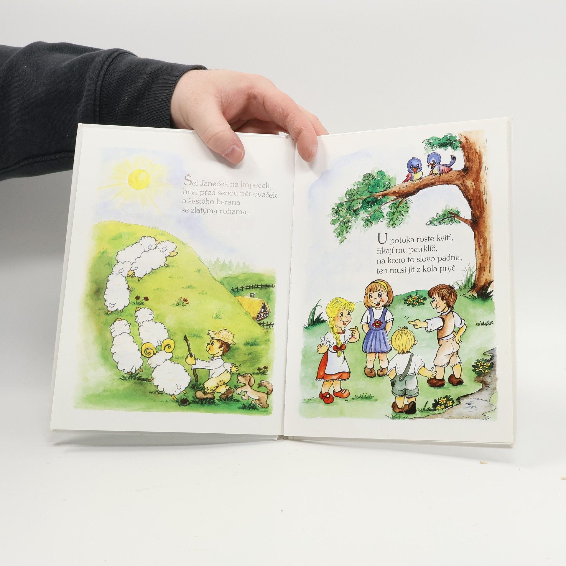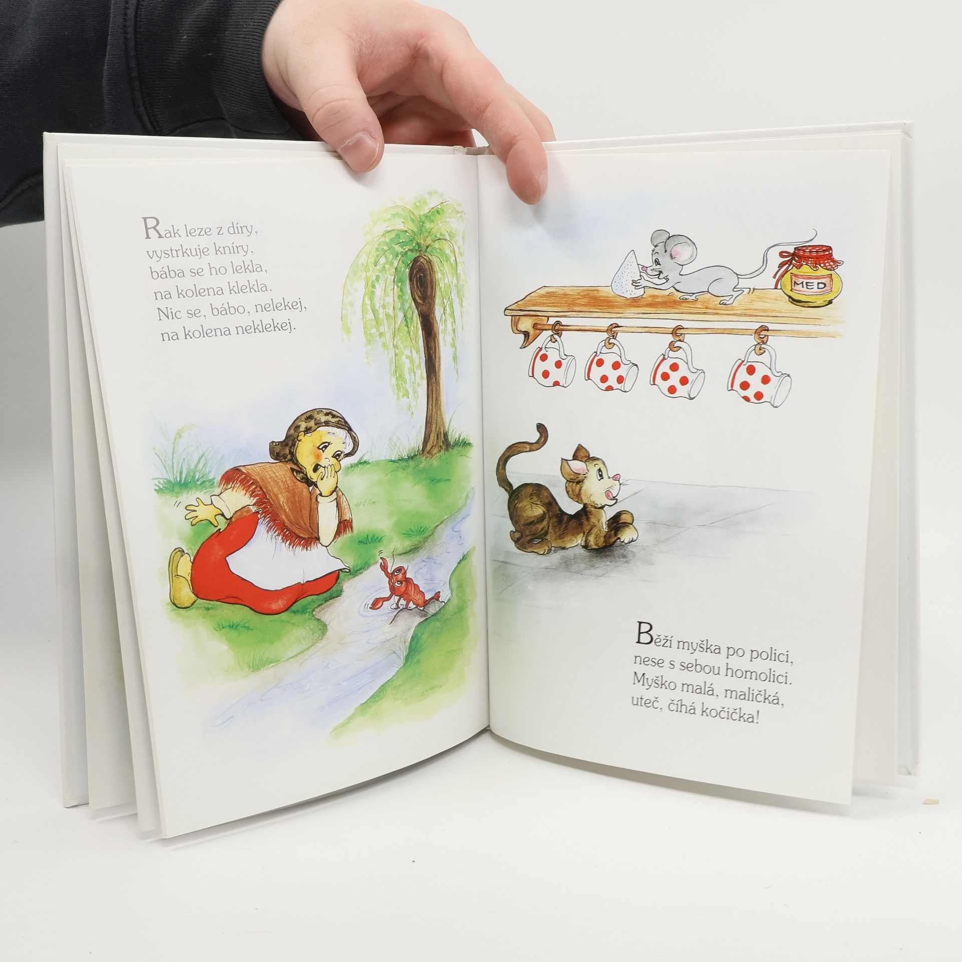 Šel Janeček na kopeček, Pekař peče housky, Kovej, kovej, kováříčku, Vařila myšička kašičku… a další známá i pozapomenutá česká lidová říkadla a básničky jsou v knize doplněna veselými ilustracemi Vladimíry Vopičkové.