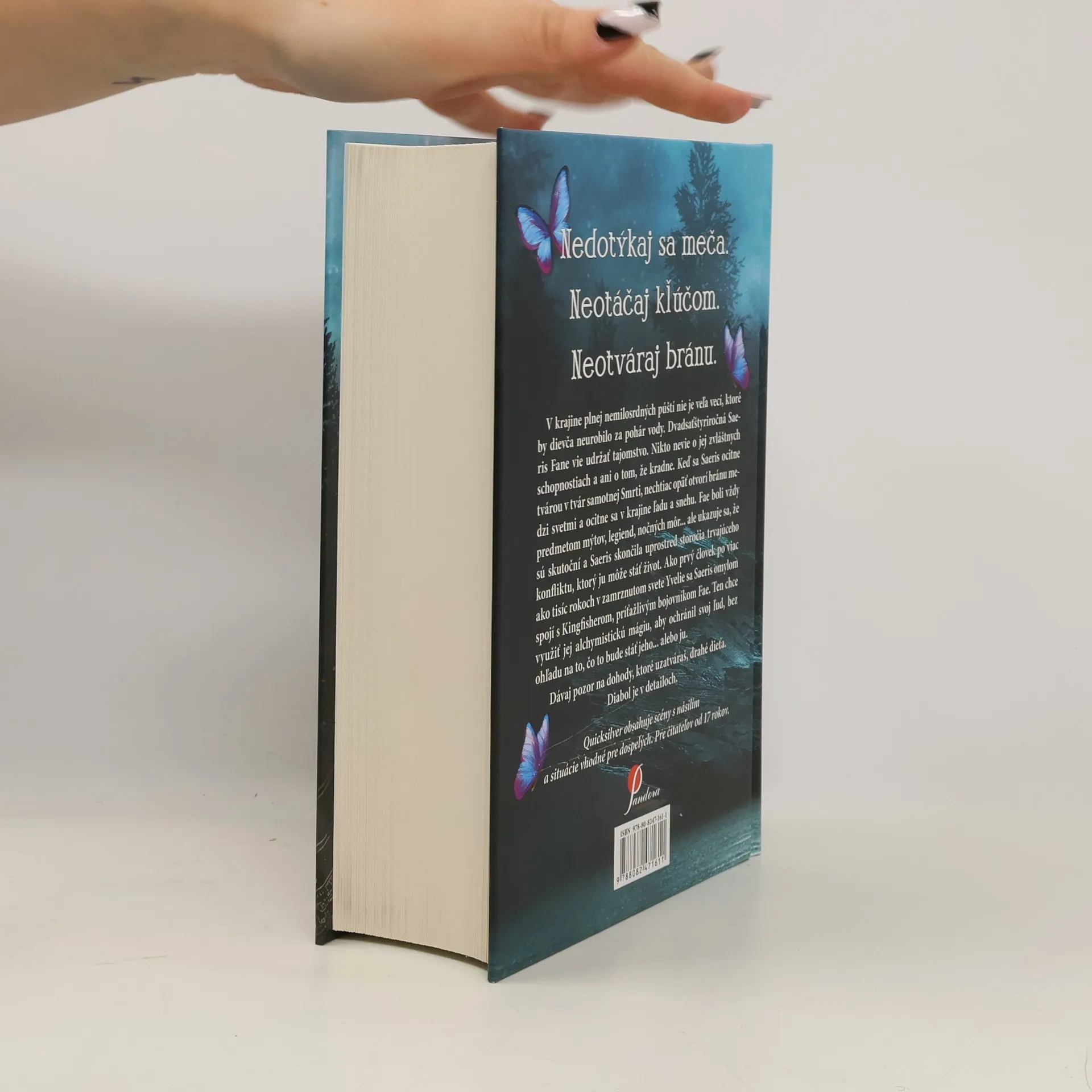 Nedotýkaj sa meča. Neotáčaj kľúčom. Neotváraj bránu. V krajine plnej nemilosrdných púští nie je veľa vecí, ktoré by dievča neurobilo za pohár vody. Dvadsaťštyriročná Saeris Fane vie udržať tajomstvo. Nikto nevie o jej zvláštnych schopnostiach ani o tom, že odkedy si pamätá, kradne z vreciek a z rezervoárov Nesmrteľnej kráľovnej. Tajomstvo je však ako uzol. Skôr či neskôr sa nevyhnutne rozviaže. Keď sa Saeris ocitne tvárou v tvár samotnej smrti, nechtiac opäť otvorí bránu medzi svetmi a ocitne sa v krajine ľadu a snehu. Fae boli vždy predmetom mýtov, legiend, nočných môr... ale ukazuje sa, že sú skutoční, a Saeris skončila uprostred storočia trvajúceho konfliktu, ktorý ju môže stáť život. Ako prvý človek, ktorý za viac ako tisíc rokov vstúpil do zamrznutých hory Yvelie, sa Saeris omylom zviaže Kingfisherovi, príťažlivému bojovníkovi Fae, ktorý má svoje tajomstvá a plány. Využije jej alchymistickú mágiu, aby ochránil svoj ľud, bez ohľadu na to, čo to bude stáť jeho... alebo ju. Smrť má meno. Je to Kingfisher z Ajunskej brány. Jeho minulosť je temná. Jeho správanie je odporné. A je jedinou možnosťou, ako sa Saeris môže dostať domov. Dávaj pozor na dohody, ktoré uzatváraš, drahé dieťa. Diabol je v detailoch... N.B.