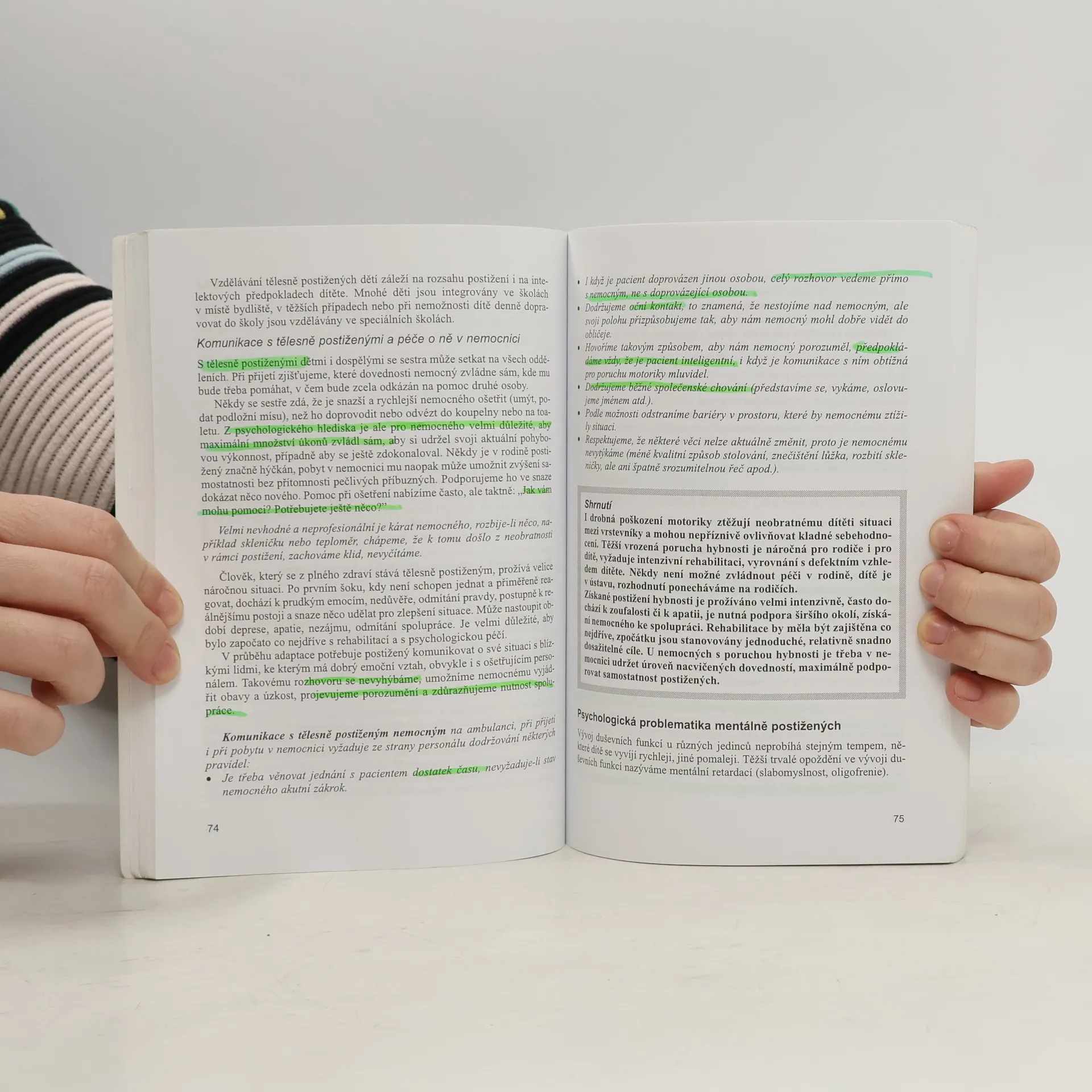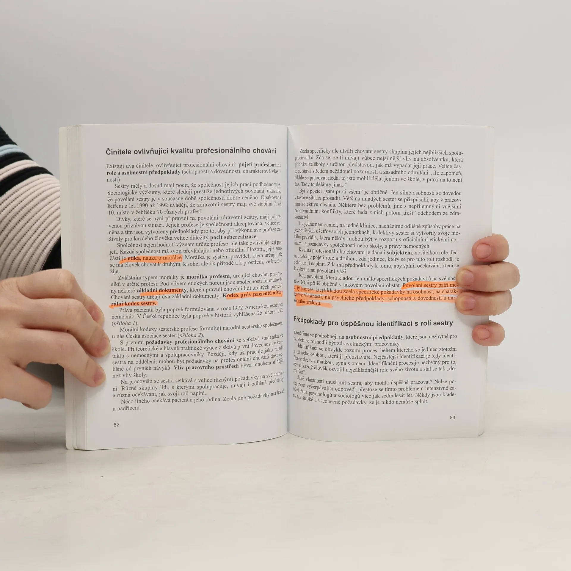 Obecné zákonitosti psychického vývoje člověka a různé odlišnosti v psychice nemocných. Zabývá se psychologií sestry a zvláštnostmi při práci s dětmi. Věnuje pozornost sebepoznávání a sebehodnocení, zjišťování potřeb, komunikaci, sociálním dovednostem a relaxaci. Uvádí řadu námětů pro praktická cvičení.