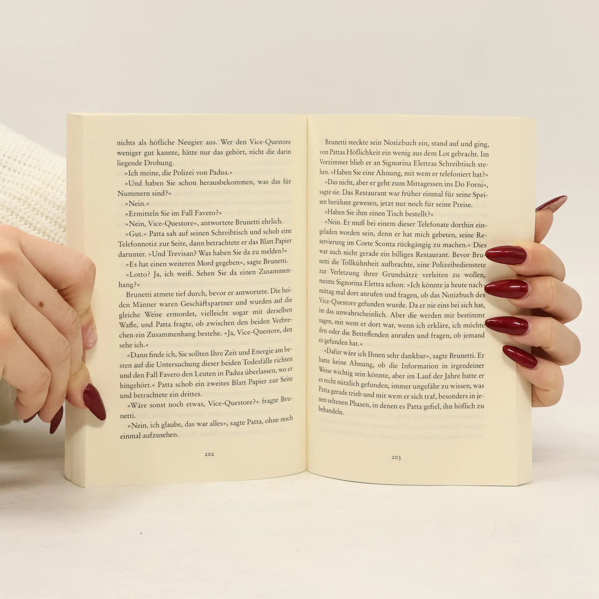 Niemand hätte wohl je erfahren, warum jemand von einer venezianischen Bar aus in die ganze Welt telefoniert; und warum einige der angewählten Nummern in den Adreßbüchern zweier Männer stehen, die binnen einer Woche sterben; wären nicht acht rumänische Frauen verunglückt, die nach Italien geschmuggelt werden sollten. Dieser Fall führt Commissario Brunetti tief in die Unterwelt Venedigs. "