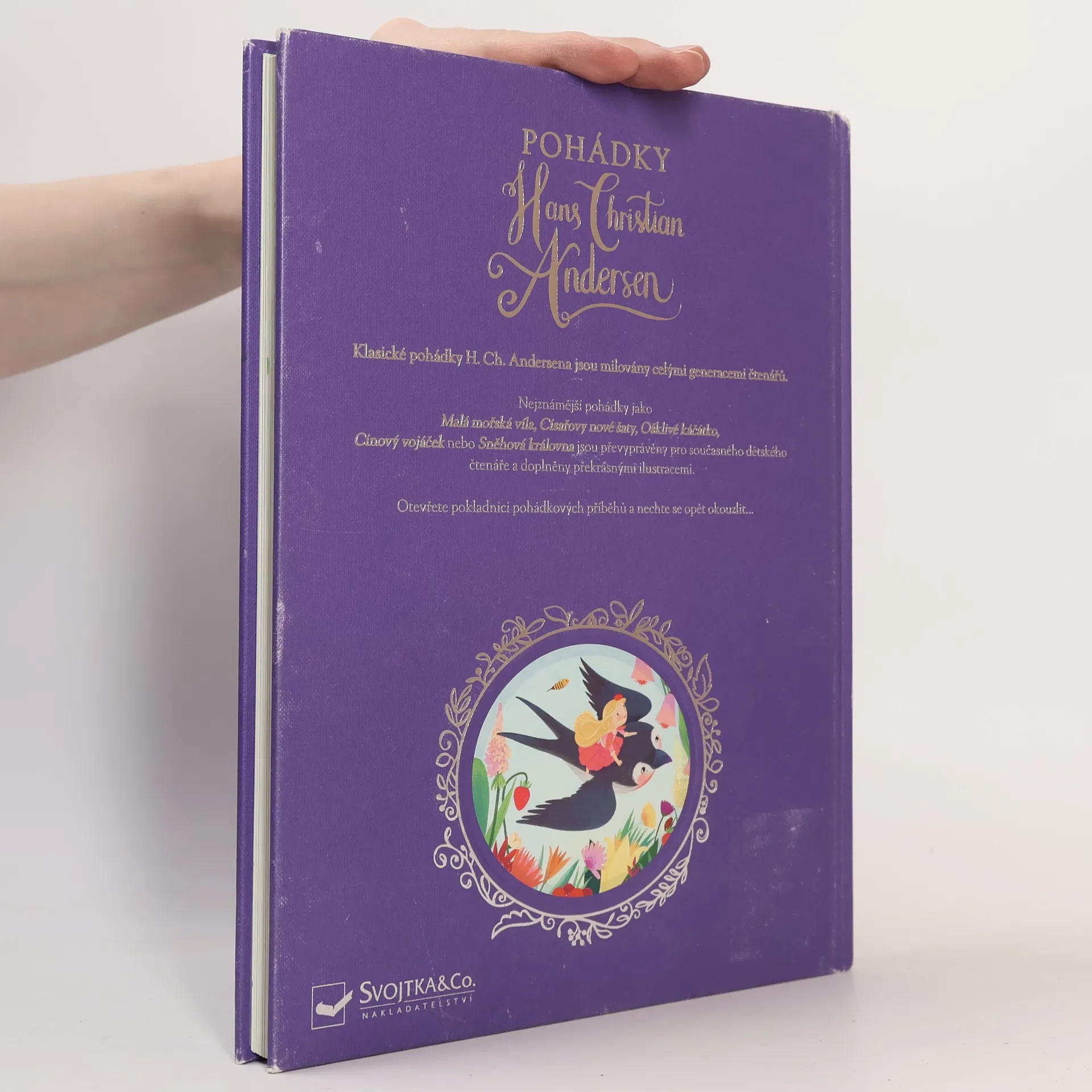 Osm Andersenových nejznámějších pohádek bylo převyprávěno pro současného dětského čtenáře a každá z nich je opatřena překrásnými ilustracemi. Otevřete pokladnici pohádkových příběhů a nechte se vy i vaše děti okouzlit. Nesmí chybět ani krátký příběh o vypravěči. Obsahuje pohádky Malá mořská víla, Císařovy nové šaty, Ošklivé káčátko, Jedlička, Sněhová královna, Slavík, Princezna na hrášku a Cínový vojáček.
