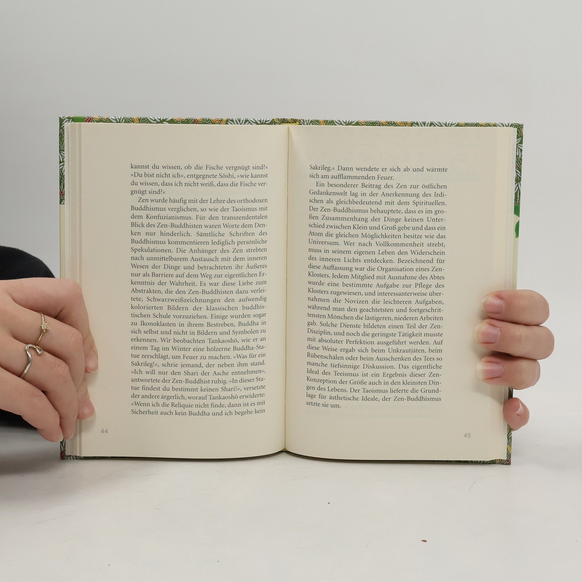 Kakuzo Okakuras 'Buch vom Tee', 1906 erstmals erschienen, ist nicht nur eine zarte poetische Hinführung zum Zeremoniell des Teegenusses, sondern gewährt erhellende Einblicke in die Geheimnisse japanischer Kultur. In sieben Kapiteln erzählt es von der engen Verbundenheit des Teekultes mit Taoismus und Zen-Lehre, schildert seinen Einfluss auf Architektur und Kunst, besonders auf die Blumensteckkunst Ikebana, und verdeutlicht, wie tief die rituelle Teebereitung im japanischen Lebensgefühl verwurzelt ist.