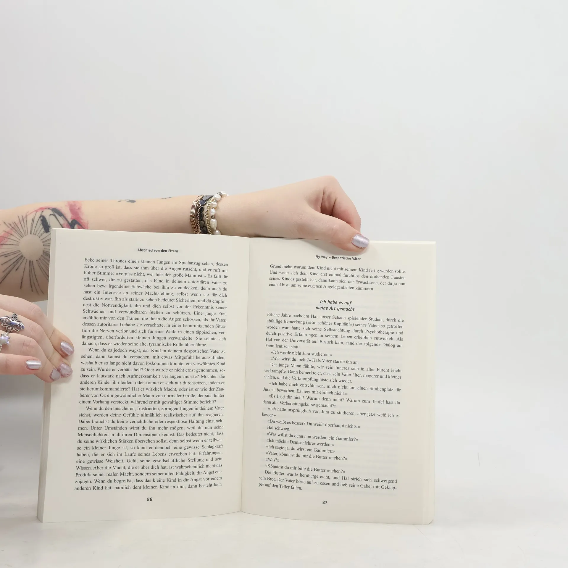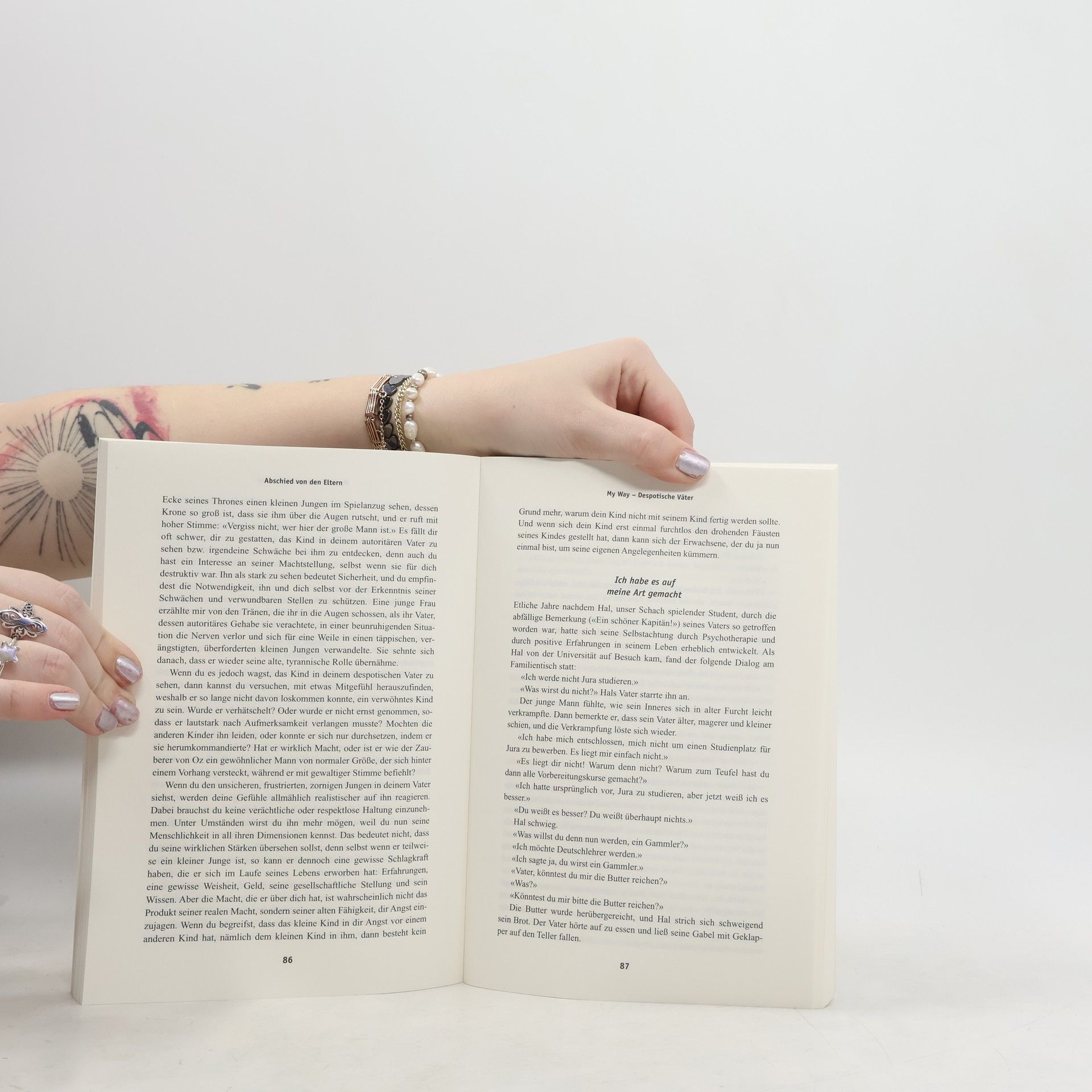 Es ist ein erfreulicher Aspekt dieses Buches, daß es keinen Zorn oder Haß auf die Eltern predigt, sondern in humorvoller Weise eine aufgeschlossene Atmosphäre beim Leser schafft, die das Fallmaterial als Verständigungshilfe für eine Normalisierung der Beziehung zu den real existierenden Eltern und zu den verinnerlichten Eltern-Aspekten anbietet. Bei den vielen Beispielen wird sich jeder Leser wiederfinden. Halpern hat die Entscheidungen, die Eltern und Kinder auf dem Weg zu innerer Reife treffen müssen, klar und prägnant beschrieben. Glücklicherweise ist das Buch frei von Fachjargon, von wissenschaftlichem Imponiergehabe und von gönnerhafter Über-Vereinfachung. Es ist ein wertvoller Beitrag zur Darstellung zwischenmenschlicher Beziehungen.
