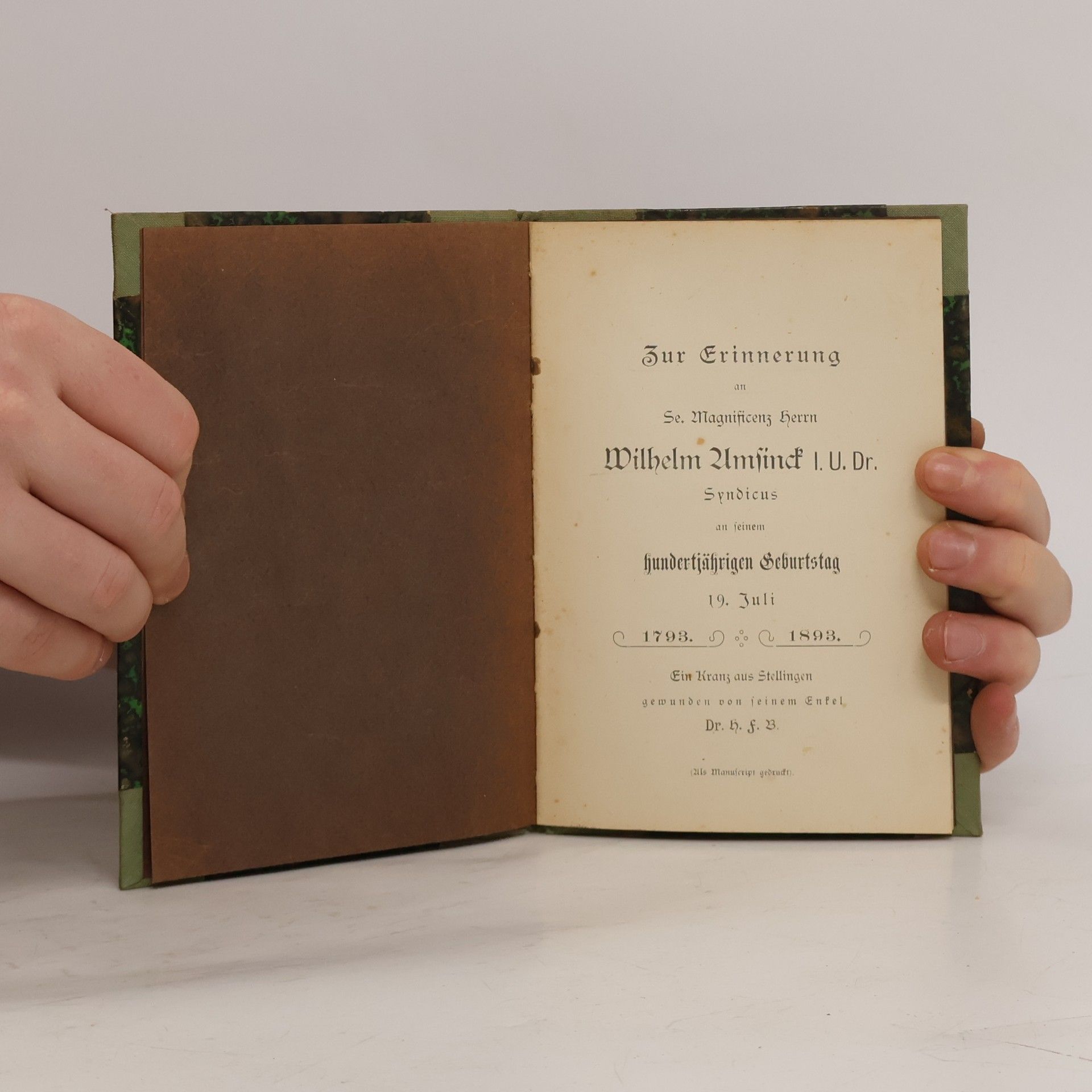 Zur Erinnerung an Wilhelm Amsinck, Autores varios