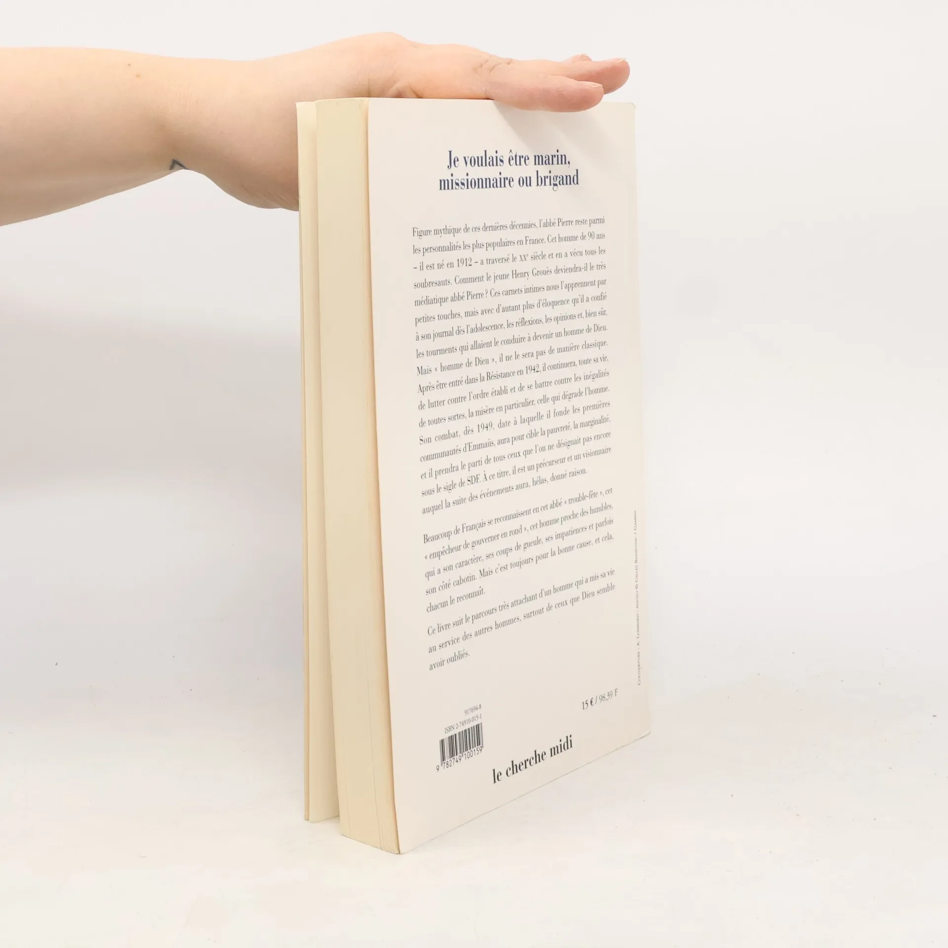 Figure emblématique des dernières décennies, l'abbé Pierre demeure l'une des personnalités les plus appréciées en France. À 90 ans, cet homme, né en 1912, a vécu les tumultes du XXe siècle. Comment le jeune Henry Grouès est-il devenu le célèbre abbé Pierre ? Ses carnets intimes révèlent, par petites touches, ses réflexions, opinions et tourments qui l'ont conduit à devenir un homme de Dieu, mais d'une manière peu conventionnelle. Engagé dans la Résistance dès 1942, il a consacré sa vie à lutter contre l'injustice et la misère qui déshumanisent. En 1949, il fonde les premières communautés d'Emmaüs, ciblant la pauvreté et la marginalité, défendant ceux qui n'étaient pas encore désignés comme SDF. Précurseur et visionnaire, il a vu la nécessité de son combat, qui a été confirmé par les événements ultérieurs. Beaucoup de Français s'identifient à cet abbé " trouble-fête ", cet " empêcheur de gouverner en rond ", proche des humbles, avec son caractère, ses coups de gueule et son impatience, mais toujours pour une bonne cause. Ce récit suit le parcours touchant d'un homme dévoué aux autres, surtout à ceux que Dieu semble avoir oubliés.