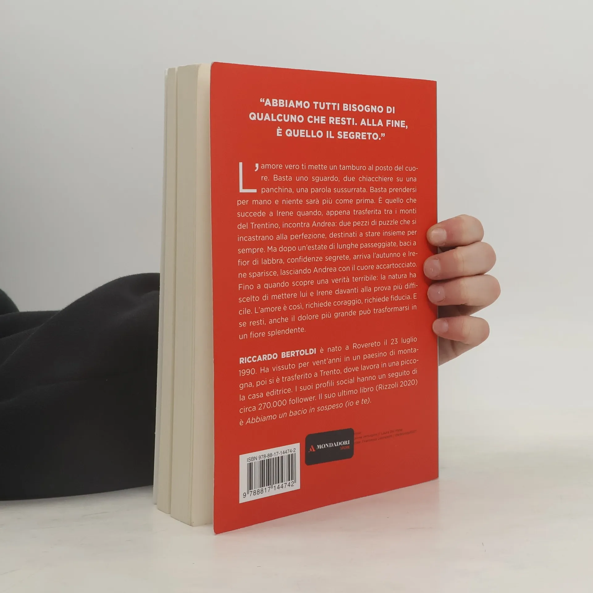 Abbiamo tutti bisogno di qualcuno che resti. Alla fine, è quello il segreto. L'amore vero ti mette un tamburo al posto del cuore. Basta uno sguardo, due chiacchiere su una panchina, una parola sussurrata all'orecchio. Basta prendersi per da quel momento, niente sarà più come prima. È questo che succede a si è appena trasferita a Nosellari, un minuscolo paese che sembra uscito da una fiaba, ed è proprio lì, tra i monti del Trentino, che incontra Andrea, l'amore della sua vita. Insieme sono pura scintilla, due pezzi di puzzle che si incastrano alla perfezione. Sentono che il legame che li unisce ha la forza delle montagne e la saggezza degli per questo è destinato a essere per sempre. La loro è un'estate fatta di lunghe passeggiate, di baci a fior di labbra, di notti in tenda in mezzo al bosco, a leggere l'uno per l'altra e confidarsi segreti. Poi però arriva l'autunno e Irene sparisce, lasciando Andrea con il cuore accartocciato come le foglie sui marciapiedi. Presto, il ragazzo scopre una verità la natura, che spesso si porta via le cose più belle e fragili, ha scelto di mettere lui e Irene davanti alla prova più difficile. Ma Andrea sa che certe cose non muoiono mai si nascondono soltanto, per poi rifiorire al momento giusto. L'amore è così, richiede coraggio, richiede fiducia. E se resti, se sai aspettare, anche il dolore più grande può trasformarsi in un fiore splendente.