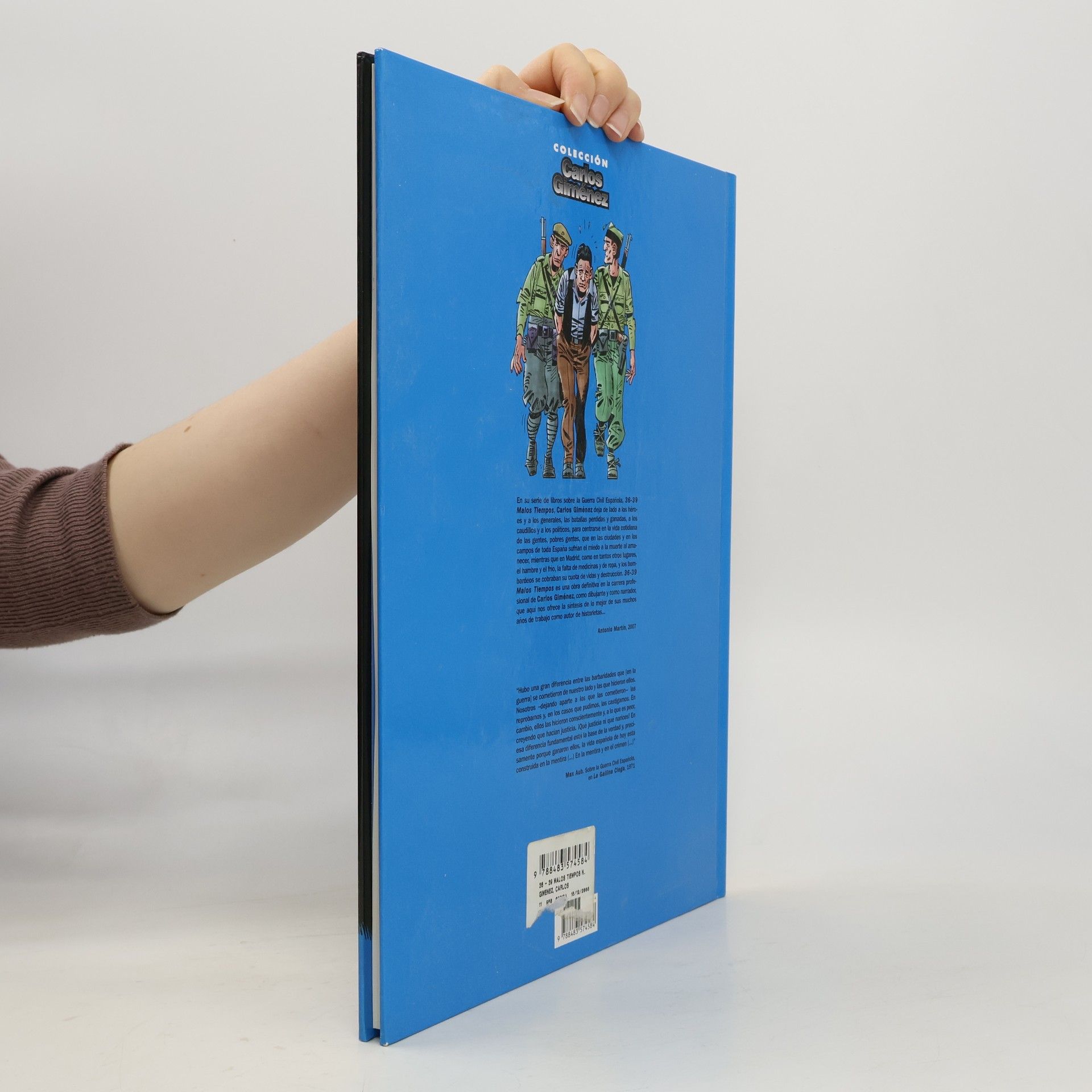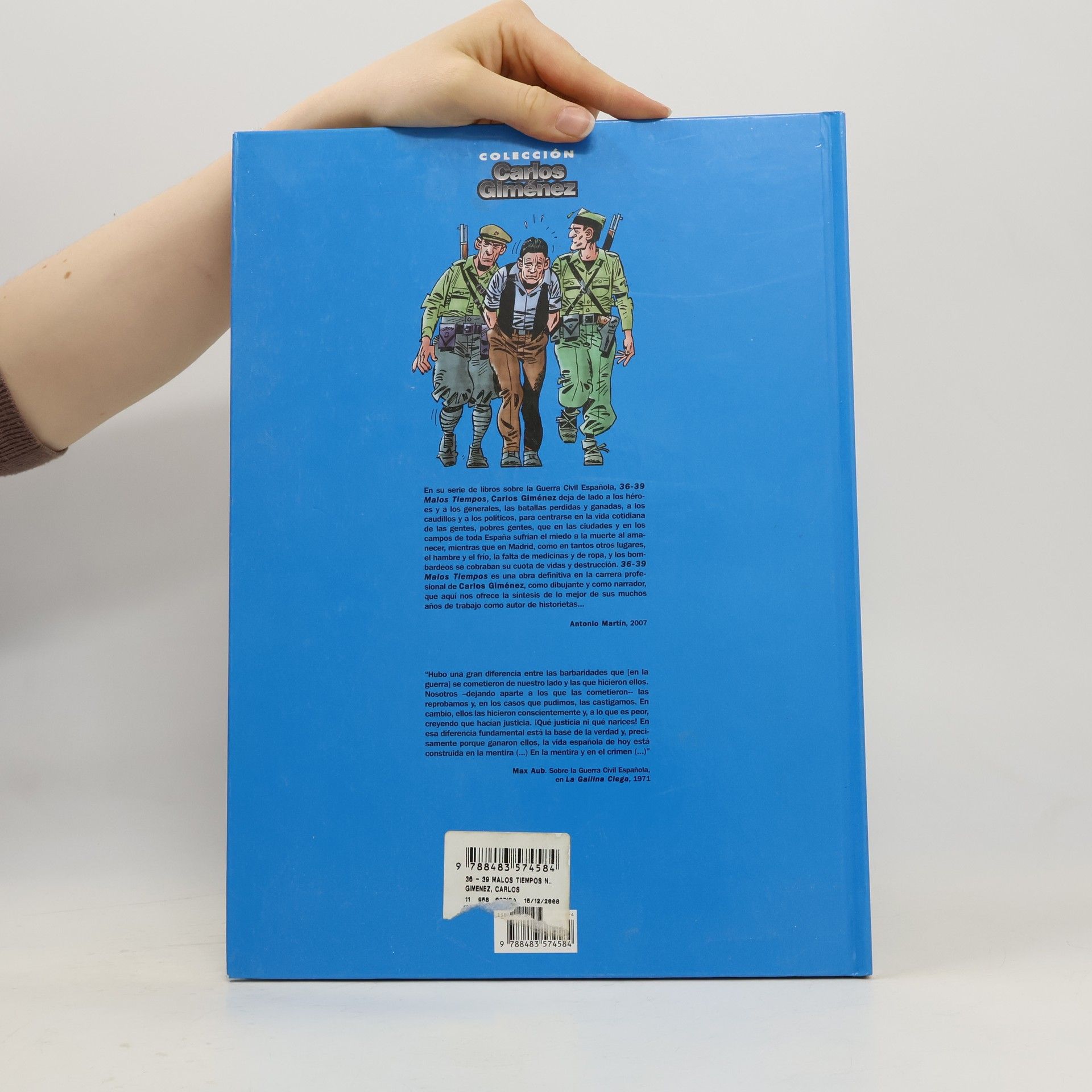 En su serie de libros '36-39 Malos tiempos', Carlos Giménez deja de lado a los héroes y los generales, a los caudillos y a los políticos, para centrarse en la vida cotidiana de las gentes, las pobres gentes, que en las ciudades y los campos de España sufrían el miedo a la muerte al amanecer, mientras que en Madrid, como en tantos otros lugares, el hambre y el frío, la falta de medicinas y de ropa, y los bombardeos se cobraban su cuota de vidas y destrucción.