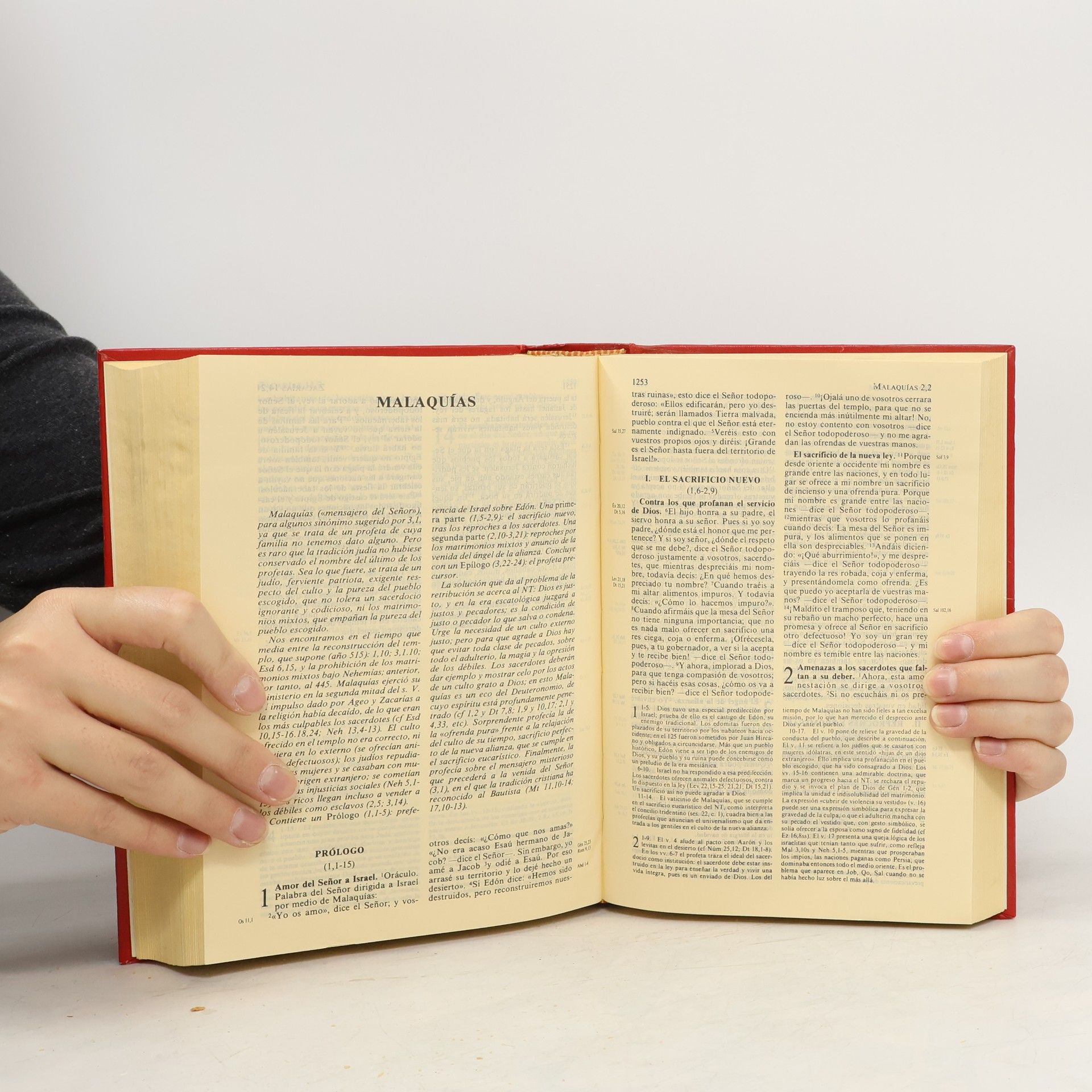 Traducida de los textos originales por quince especialistas, La Santa Biblia ha sido revisada y actualizada según las pautas del Vaticano II por un equipo de profesores de las Universidades de Comillas y Salamanca y de la Escuela Bíblica de Madrid. La presente edición en letra y formato grande ofrece una introducción general a la Biblia, introducciones particulares a los bloques de libros –Pentateuco, Profetas...– y a cada uno de los libros que conforman la Biblia, y un índice sinóptico del Evangelio con los pasajes y sus referencias bíblicas. Incorpora también cuatro láminas artísticas que ayudan a la contemplación.