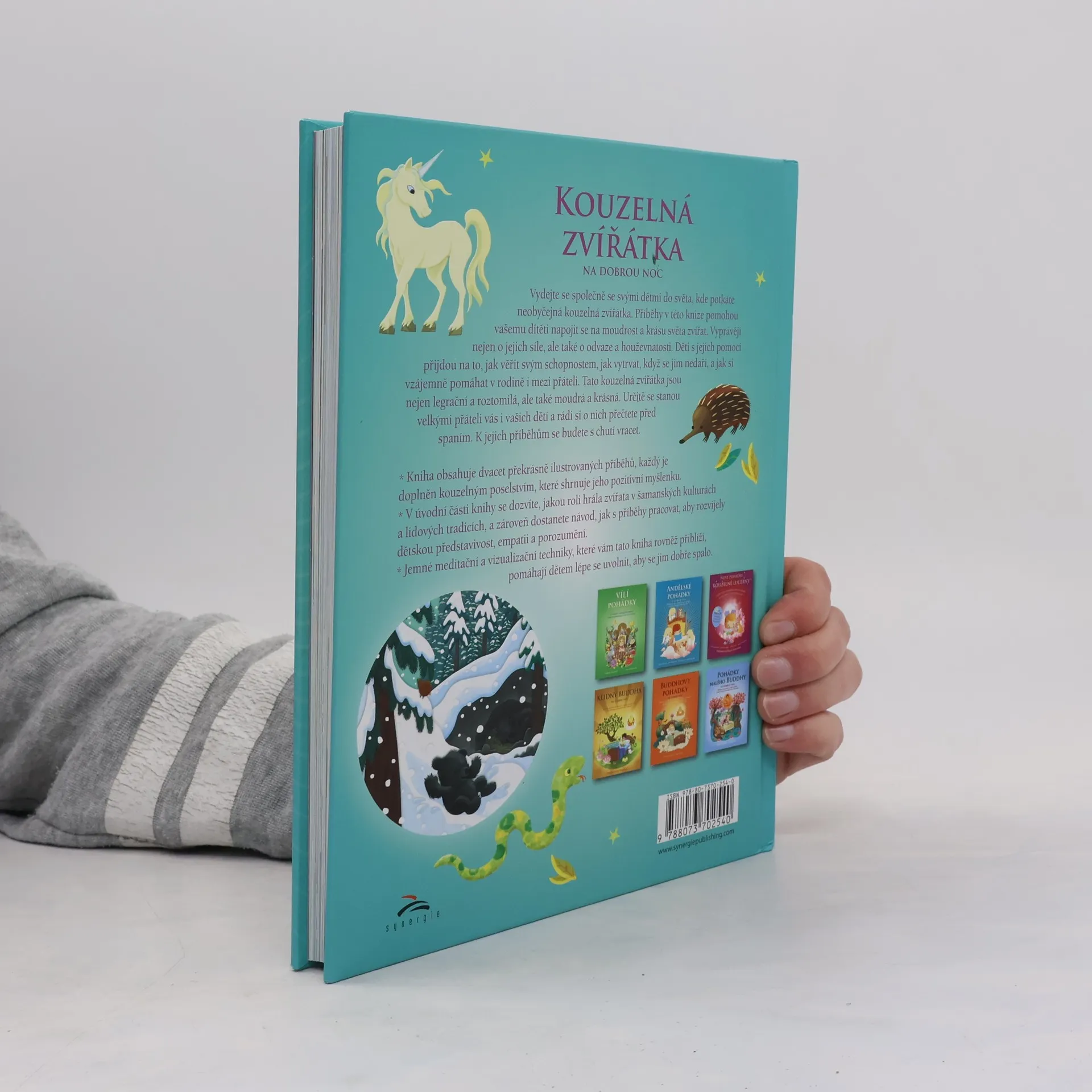 Příběhy v knížce pomohou vašemu dítěti, aby se napojilo na moudrost a krásu světa zvířat. Děti s jejich pomocí přijdou na to, jak věřit svým schopnostem, jak vytrvat, když se jim nedaří a jak si vzájemně pomáhat v rodině i mezi přáteli. Tato kouzelná zvířátka jsou nejen legrační a roztomilá, ale také moudrá a odvážná. Jistě se stanou přáteli vašich dětí i vás. V úvodní části knihy se také dozvíte, jakou roli hrála zvířata v šamanských kulturách a lidových tradicích a zároveň dostanete návod, jak s příběhy pracovat, aby rozvíjely dětskou představivost, empatii a porozumění. Jemné meditační a vizualizační techniky, které vám tato kniha rovněž přiblíží, pomáhají dětem, lépe se uvolnit, aby se jim dobře spalo.
